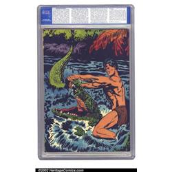 Tarzan #1 (Dell, 1948) CGC VF- 7.5 Off-white to white pages. The first issue of Tarzan's long run with Dell, it has great art by Jesse Marsh. This key issue is in great shape, with both the front and back covers clean and bright. This book has no major defects, with only a few tiny chips on the open edges that are likely from a dull cutting blade at the printers; it looks much better than the grade. Fans of the jungle lord are sure to be pleased with this very nice early Tarzan comic. Overstreet 2002 VF 8.0 value = $756. Important notice: We expect to be auctioning lots at the rate of 200-250 per hour. Sometimes eBay Premier live bid software cannot keep up with that pace, so we strongly recommend that you place a realistic proxy bid now as insurance to avoid disappointment. Also please note that all Heritage/CAA lots purchased through eBay Premier carry a 20% Buyer's Premium. Please make sure you read the Terms and Conditions.