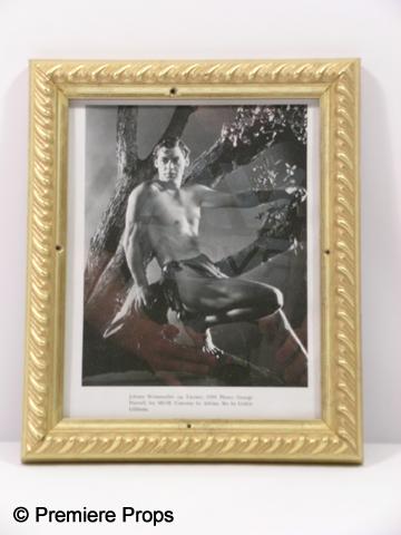 Johnny Weissmuller as "Tarzan" (1973) black and white photo framed in a gold frame. (approx. 10" x 12 1/2")