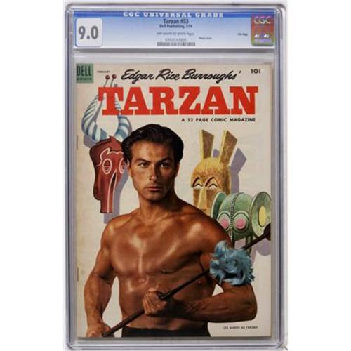 <B>Tarzan #53 File Copy (Dell, 1954) CGC VF/NM 9.0 Off-white to white pages.</B></I> Photo cover. Overstreet 2007 VF/NM 9.0 value = $103; NM- 9.2 value = $140. CGC census 10/07: 2 in 9.0, none higher.<BR><BR><b>Shipping:</b> Comics - Slabbed (certified) (<a target="_blank" href="http://www.heritageauctions.com/common/shipping.php">view shipping information</a>)