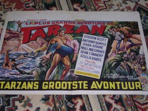 Tarzan’s Greatest Adventure Belgian Movie Poster 22”x 15” 1959 starring Gordon Scott condition VG (minor nicks/tape marks)