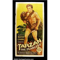 Tarzan the Fearless (Principal Distributing, 1933). Three Sheet (41"X 81"). After the huge success of MGM Studio with the Weismuller Tarzan, producer Sol Lesser signed a young Olympic swimmer named Buster Crabbe to star in the title role of his version of the Ape Man. The film was released as a 71-minute feature and as a serial. Offered here is the only known copy of a beautiful large format poster for the feature version. Very Fine on Linen. Important notice: We expect to be auctioning lots at the rate of 200-250 per hour. Sometimes eBay Premier live bid software cannot keep up with that pace, so we strongly recommend that you place a realistic proxy bid now as insurance to avoid disappointment. Also please note that all Heritage/CAA lots purchased through eBay Premier carry a 20% Buyer's Premium.