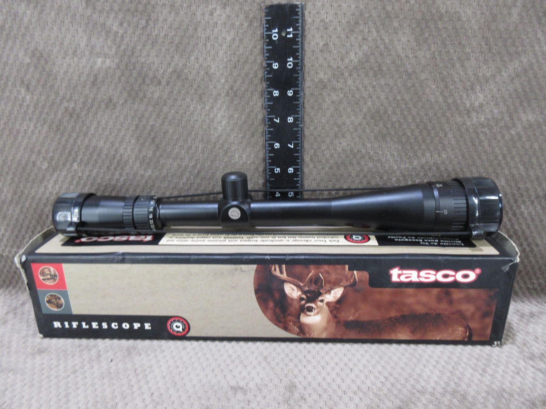 Tasco Model #Mag IV 6-24x40 Rifle Scope with Lense Covers - Appears to have black ring on top to right as something is out of place inside scope - Duplex Crosshair - In original box