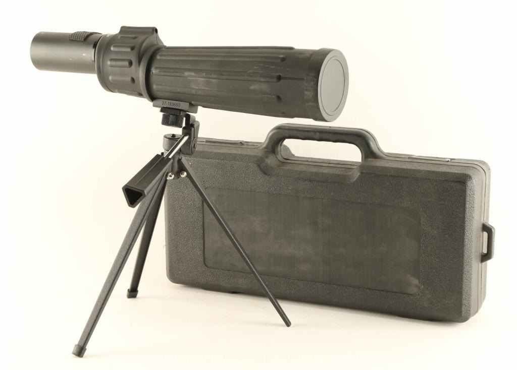 Includes (1) Tasco Spotting Scope 18-36x with focus ring, 50mm objective lens, and tripod in a hard case.
