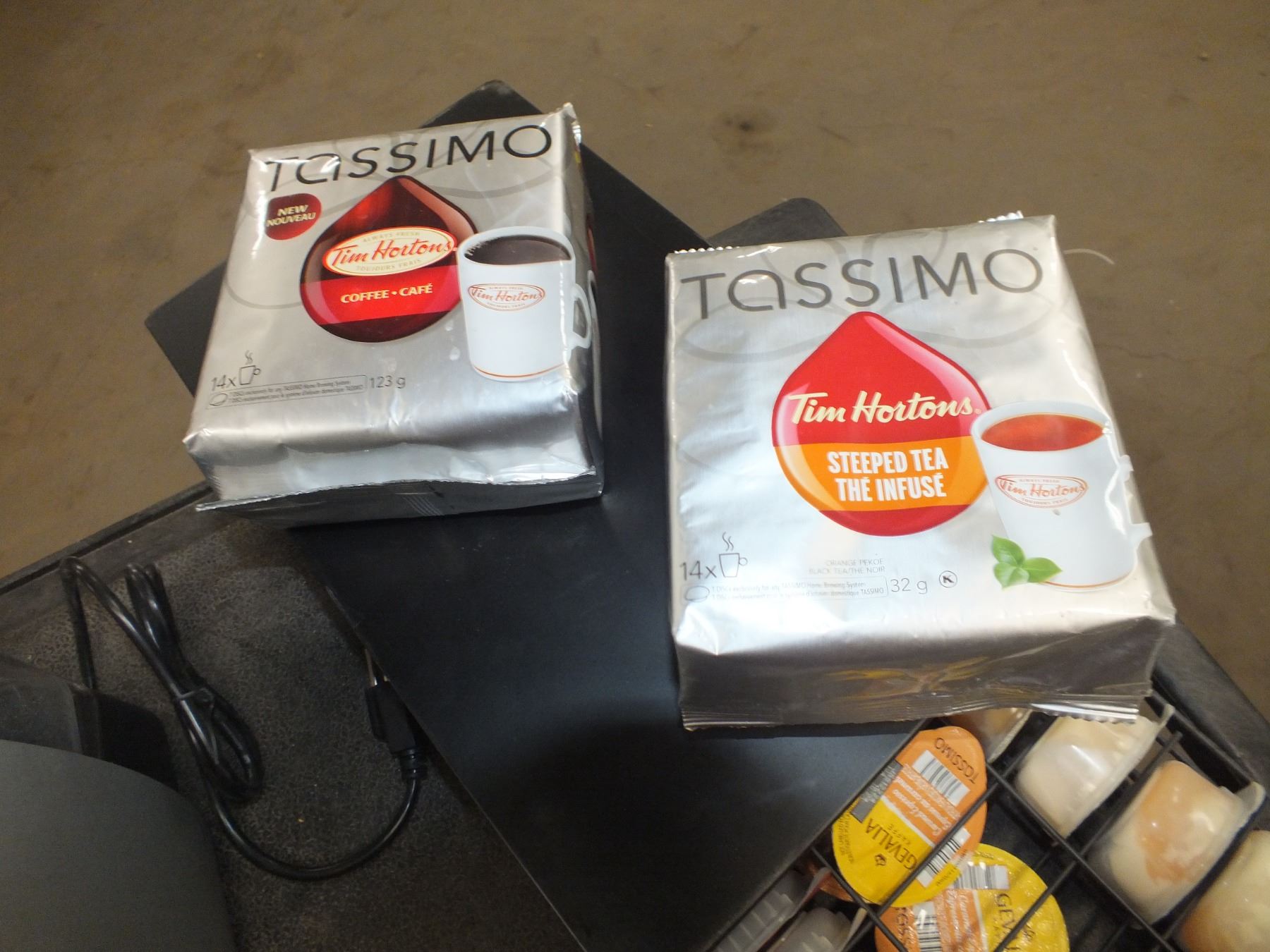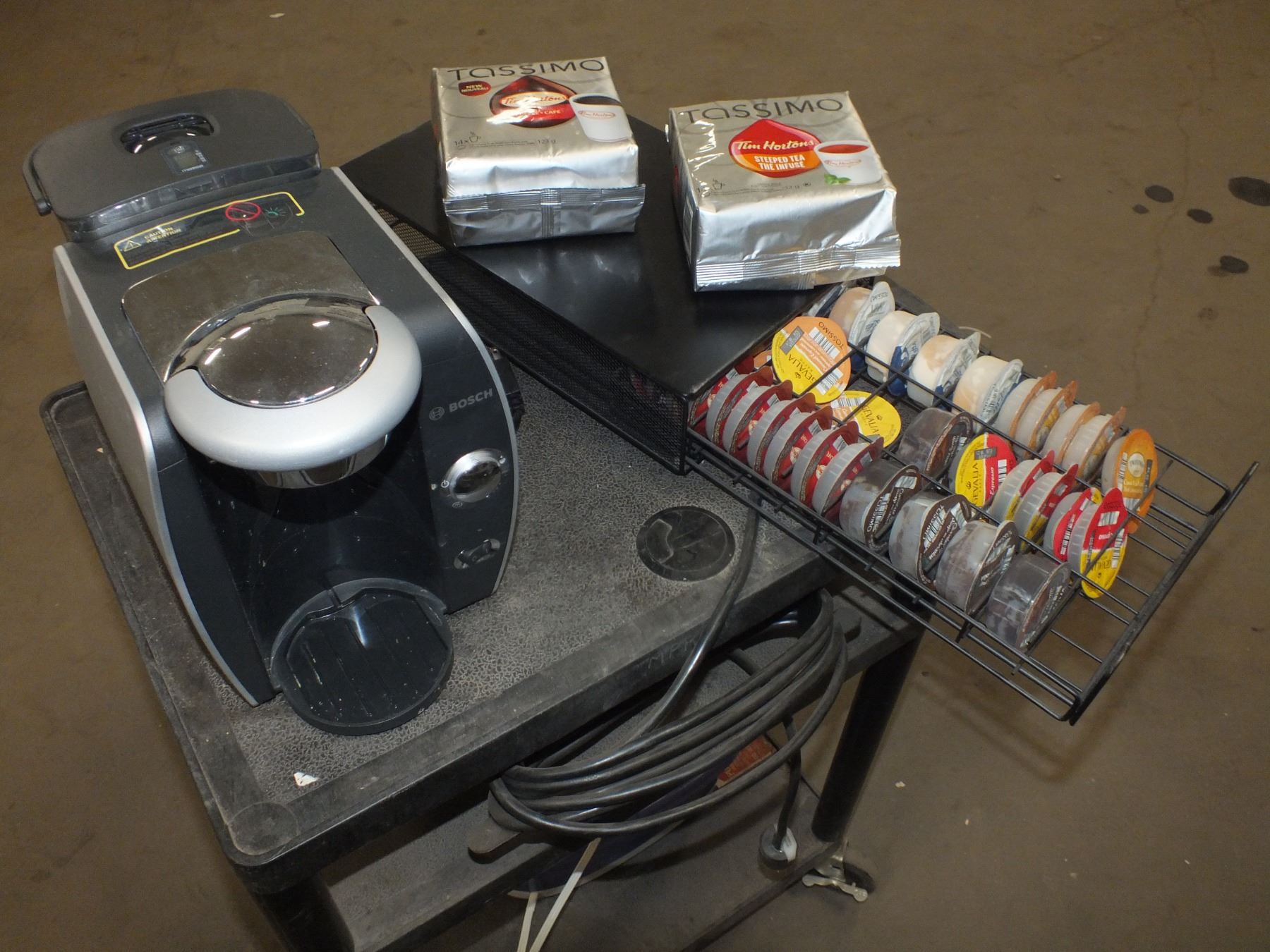 Tassimo Machine w/ Cup Holder & Coffee, lots of coffee here...lightly used