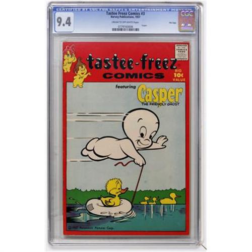 <B>Tastee-Freez Comics #3 File Copy (Harvey, 1957) CGC NM 9.4 Cream to off-white pages.</B></I> Featuring Casper. Overstreet 2007 NM- 9.2 value = $70. CGC census 5/07: 1 in 9.4, none higher.<BR><BR><b>Shipping:</b> Comics - Slabbed (certified) (<a target="_blank" href="http://www.heritageauctions.com/common/shipping.php">view shipping information</a>)