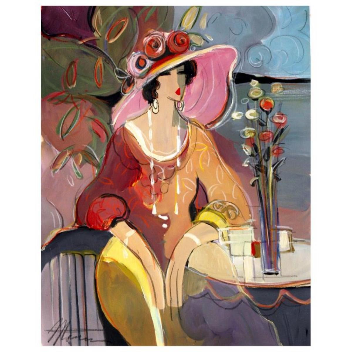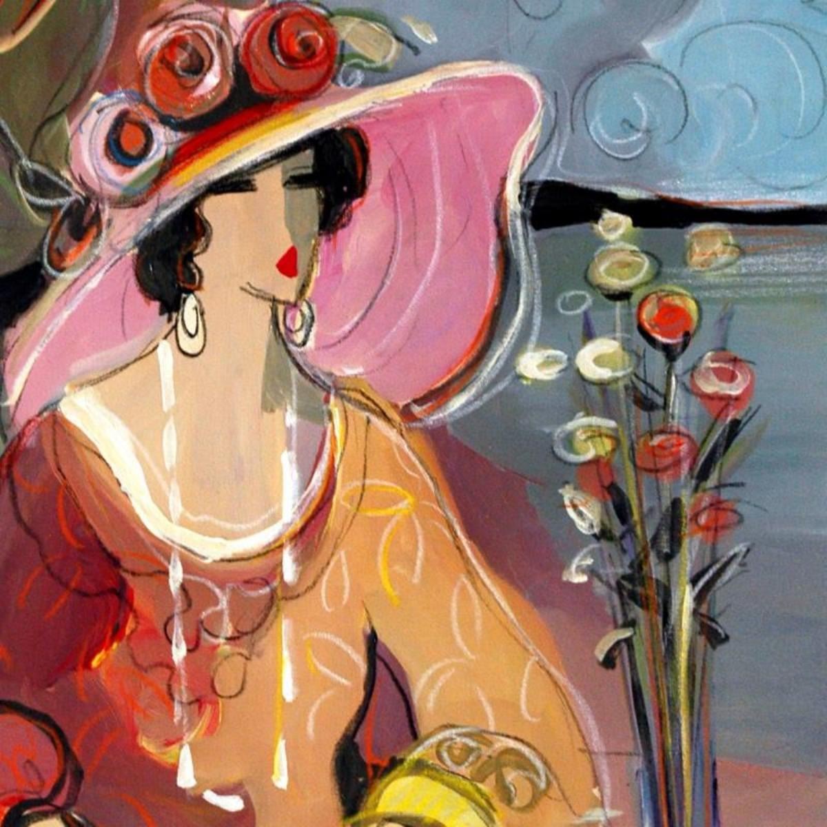 "Tatiana & The View" is an original acrylic painting on canvas by Isaac Maimon, hand signed by the artist and includes a certificate of authenticity. Measures approximately 30" x 24"