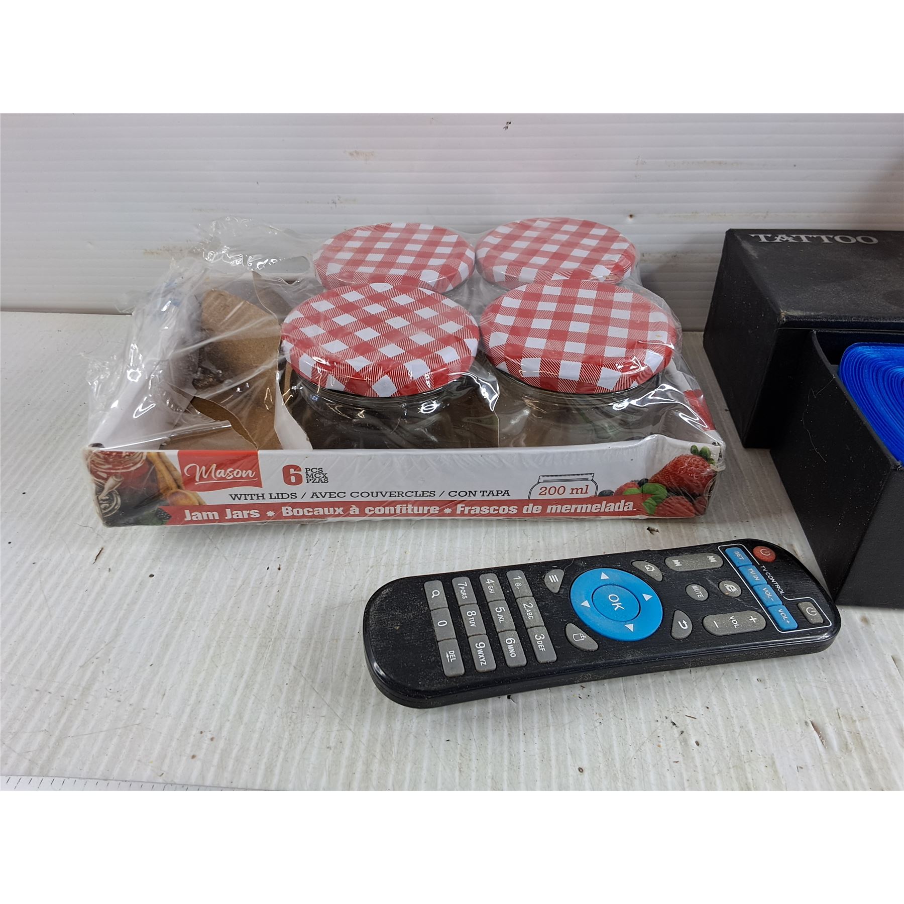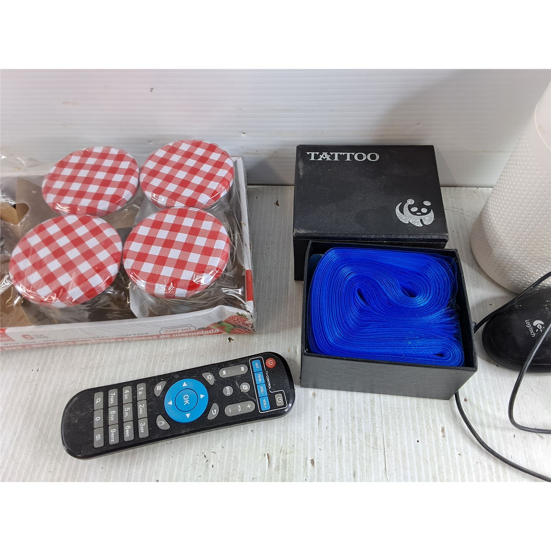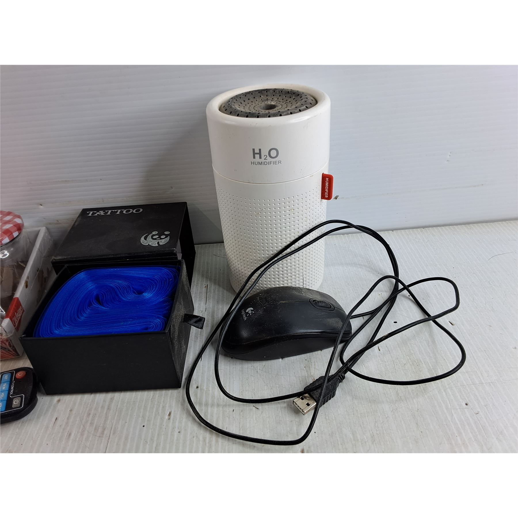 Tattoo Clip Cord Covers, Jam Jars, H2O Humidifier, Logitech USB Mouse, TV Remote - As Is