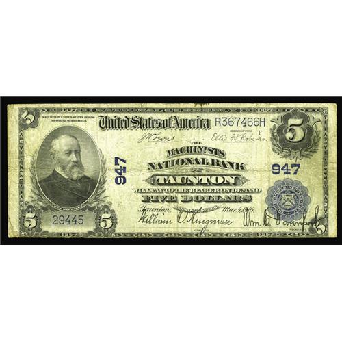 Taunton, MA - $5 1902 Plain Back The Machinists NB Taunton, MA