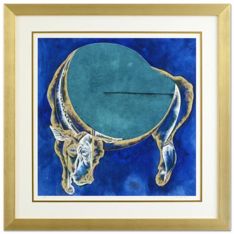The zodiac is a phenomenological study, formed by coordination between 12 specific constellations in space and birth of one specific human being in time, contrasting 12 signs that guide the meditation of love, fate and purpose of one's life. "Taurus (4/21 - 5/21)" is a limited edition giclee on paper by talented Chinese artist Lu Hong, numbered and hand signed by the artist! This piece comes custom framed. Measures approx. 28" x 28" (with frame), 20" x 20" (image).