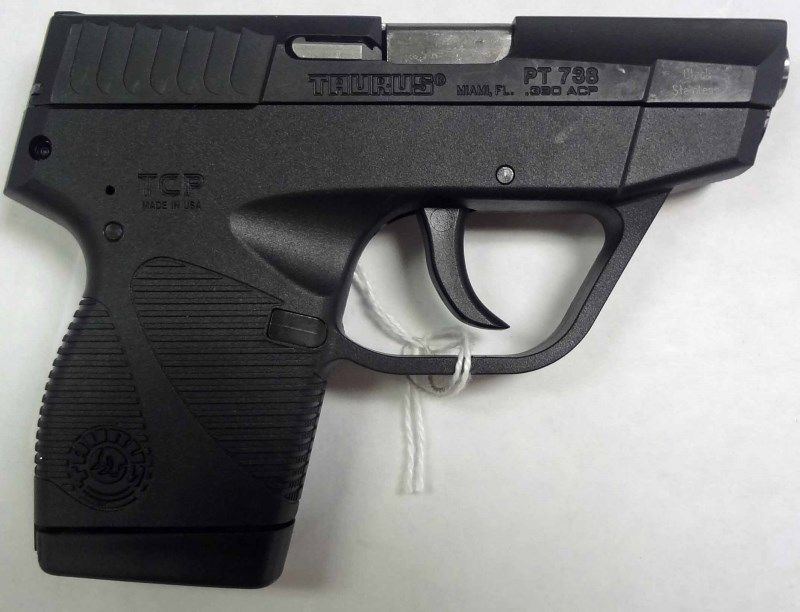 Taurus 738 TCP. 380 ACP. New in box. Double action. Capacity: 6+1. Black polymer grips. Fixed sights. Weight: 10.2 oz. Black finish. Polymer frame. Slue stainless steel slide. EST:$350-$400