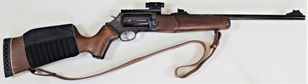 Taurus Circuit Judge .410/45 SN DX3773 5 shot carbine with 18" barrel ret dot laser sight and leather sling. Very good condition. From old St. Louis collection. FFL/Modern. Est. 200-3505 shot carbine with 18" barrel ret dot laser sight and leather sling. Very good condition. From old St. Louis collection. FFL/Modern. Est. 200-350