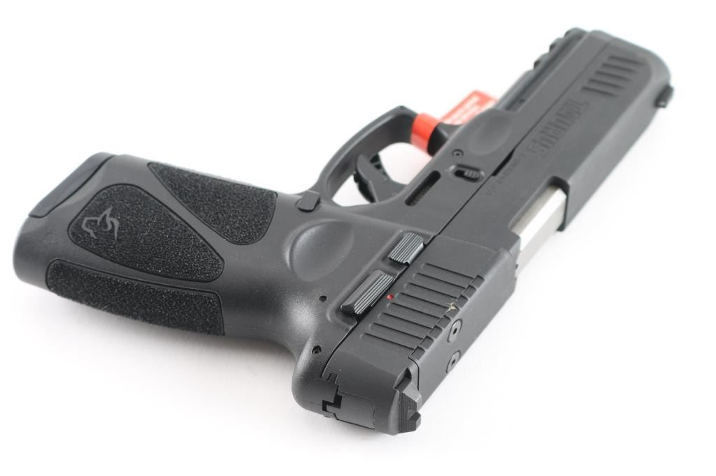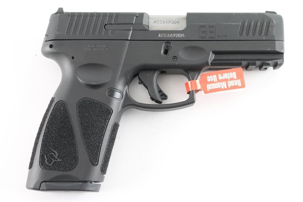 Brazilian made semi-auto pistol chambered for 9x19 ammunition. The G3 T.O.R.O. (Taurus Optic Ready Option) is ready for an optic but has a white dot front with serrated black out drift adjustable rear sights. The G3 has a polymer-frame with generous stippling patches across the grip. The frame has an integrated Picatinny rail. A manual safety and slide release lever are optimally positioned above the thumb for easy manipulation. The two piece safety trigger has a 6lb pull from the factory and a short reset. Front and rear slide serrations. Metal finish looks very good. Frame looks good. Bore looks very good. Gun looks like new. Comes with original factory cardboard box, lock, various mounting plates for optics and two factory magazines (one 15 round & one 17 round). Condition is NRA Excellent *Modern Firearm*