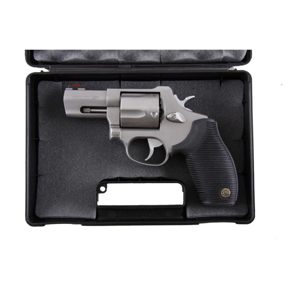 Taurus Mdl 44 Tracker Cal .44mag SN:BM576286 Double action 5 shot revolver. Matte stainless steel finish, black ribbed rubber grips, 2 1/2" full lug barrel with fixed high-vis sights, gun lock in the hammer, good bore and action. Included in black plastDouble action 5 shot revolver. Matte stainless steel finish, black ribbed rubber grips, 2 1/2" full lug barrel with fixed high-vis sights, gun lock in the hammer, good bore and action. Included in black plasticcarry case with gun lock key and instructions. Condition: Excellent with little use. 'NOT CALIFORNIA LEGAL"