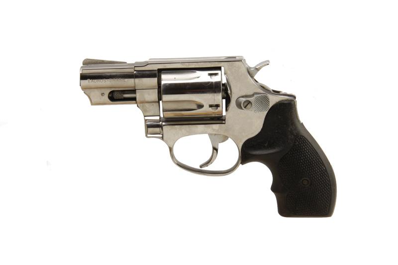 Taurus Mdl 85 Cal .38 SP SN:PB46119 Double action 5 shot pocket revolver. Nickel finish, black soft rubber grips, 2" full lug barrel, good bore and action.