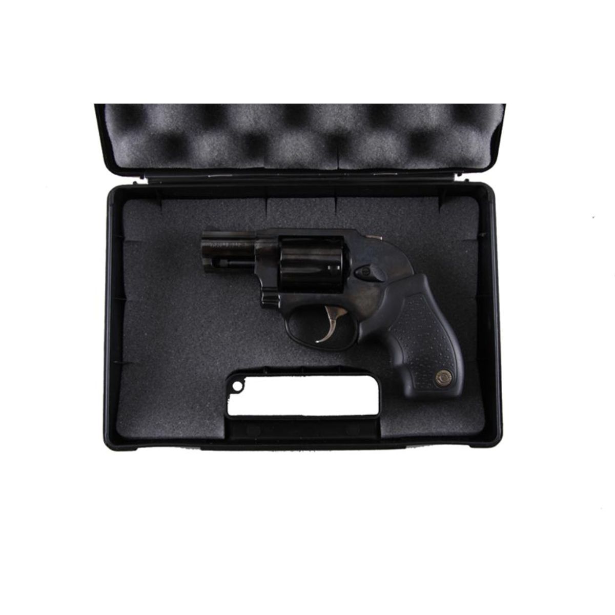 Taurus Mdl 851 Cal .38sp SN:AP43474 Double action 5 shot revolver. Blued finish, black pebbled rubber grips, 2" full lug barrel with fixed sights, shrouded hammer, gun lock in the hammer, good bore and action. Included in black plastic carry case with gDouble action 5 shot revolver. Blued finish, black pebbled rubber grips, 2" full lug barrel with fixed sights, shrouded hammer, gun lock in the hammer, good bore and action. Included in black plastic carry case withgun lock key and instructions. Condition: Excellent with little use. 'NOT CALIFORNIA LEGAL"