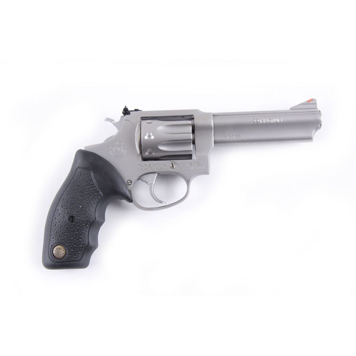 Taurus Mdl 941 Cal .22mag SN:AY97165 Double action 8 shot target revolver. Blued finish, black pebbled rubber grips, 4" barrel with adjustable target sights, gun lock in the hammer, good bore and action. Included in original box with instructions.