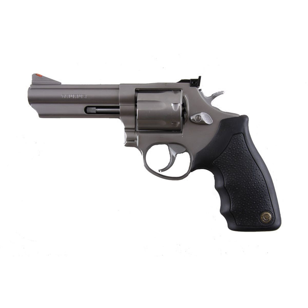 Taurus Mdl M66 Cal .357mag SN:AW551912 Double action 7 shot target revolver. Matte stainless steel finish, black pebbled rubber grips, 4" full lug barrel with adjustable red ramp/white outline target sights, gun lock in the hammer, good bore and action.Double action 7 shot target revolver. Matte stainless steel finish, black pebbled rubber grips, 4" full lug barrel with adjustable red ramp/white outline target sights, gun lock in the hammer, good bore and action. Included in original box with instructions and key. Condition: Near new with no sign of use. 'NOT CALIFORNIA LEGAL"