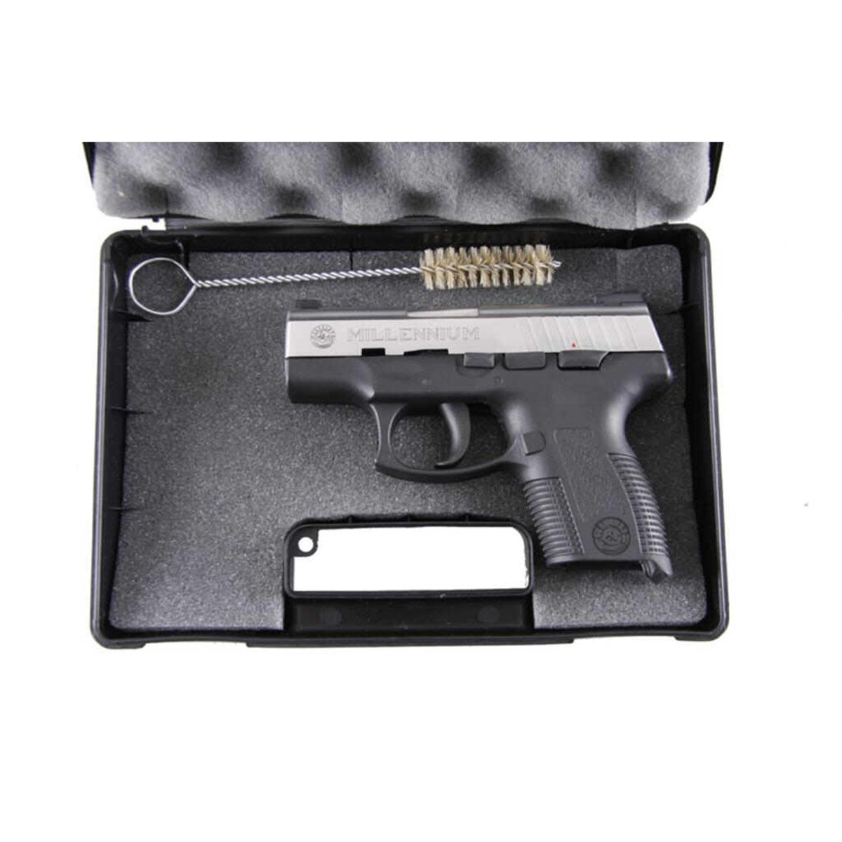 Taurus Mdl PT140 Pro Cal .40S&W SN:SZL70807 Double action 10 shot pocket pistol made in Brazil. Stainless steel slide and polymer frame, 3 1/4" barrel with 2 white dot drift adjustable Meinie sights, black checkered grips molded in, internal lock in theDouble action 10 shot pocket pistol made in Brazil. Stainless steel slide and polymer frame, 3 1/4" barrel with 2 white dot drift adjustable Meinie sights, black checkered grips molded in, internal lock in the slide,good bore and action. In original black carry case with instructions, cleaning kit, and gun lock key. Condition: Near new with no sign of use. No magazine.'NOT CALIFORNIA LEGAL"