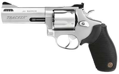 Manufacturer: Taurus Model: Tracker Model: 44 Action: Revolver Caliber: 44 Mag Barrel Length: 4" Frame/Material: Steel Finish/Color: Stainless Grips/Stock: Rubber Capacity: 5Rd Hand: Right Hand Manufacturer Wt: 34oz Sights: Adjustable Sights Manufacturer Part #: 2-440049TKR rs