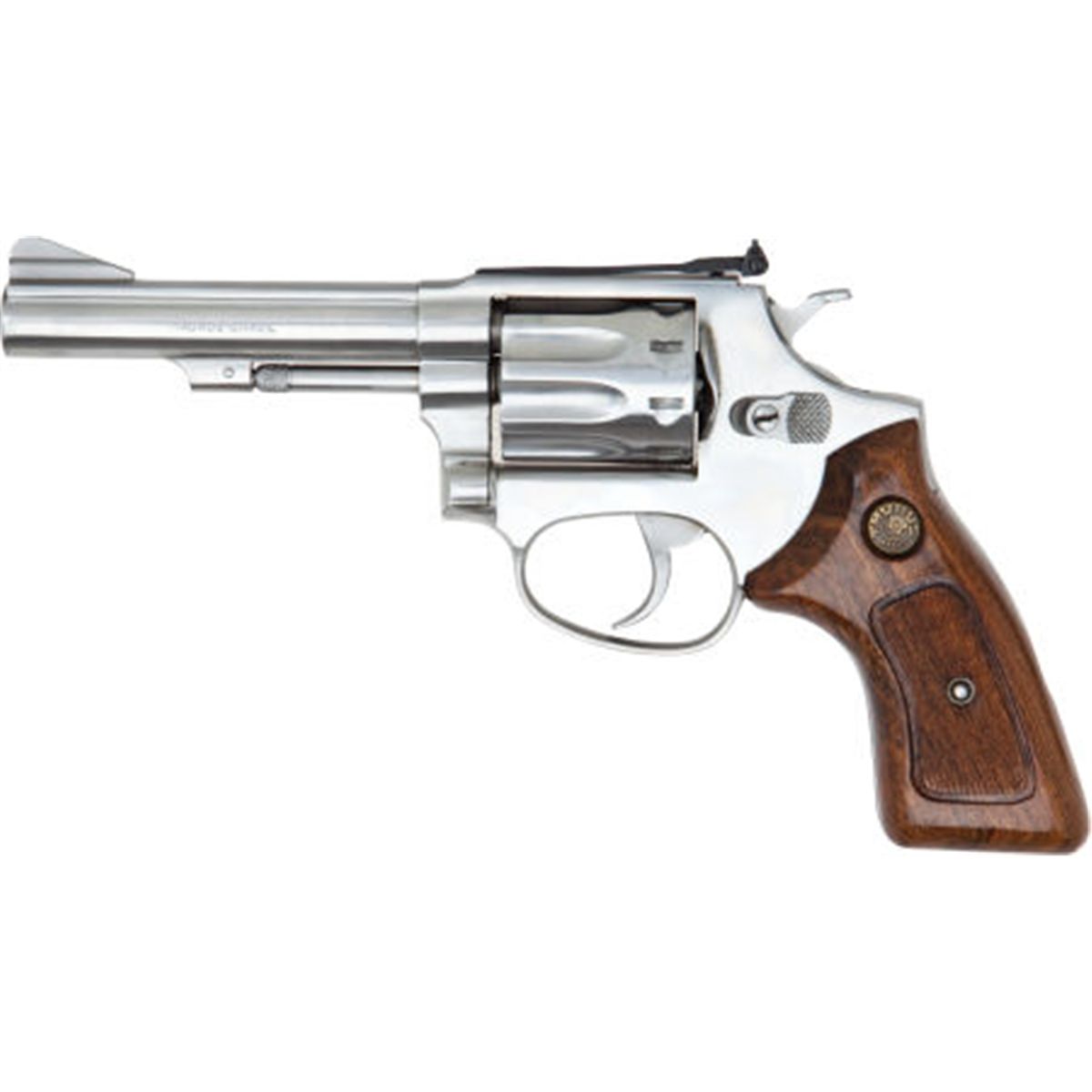 Taurus Model 94 Double Action Revolver. Serial no. LC44323, .22 caliber, 4-inch barrel. Nickel-plated finish with target sights. Checkered hardwood grips with Taurus medallions. Condition: Excellent. Fine tracking line. Only minor handling wear. Action excellent. NRA FIREARMS FOR FREEDOM PROGRAM