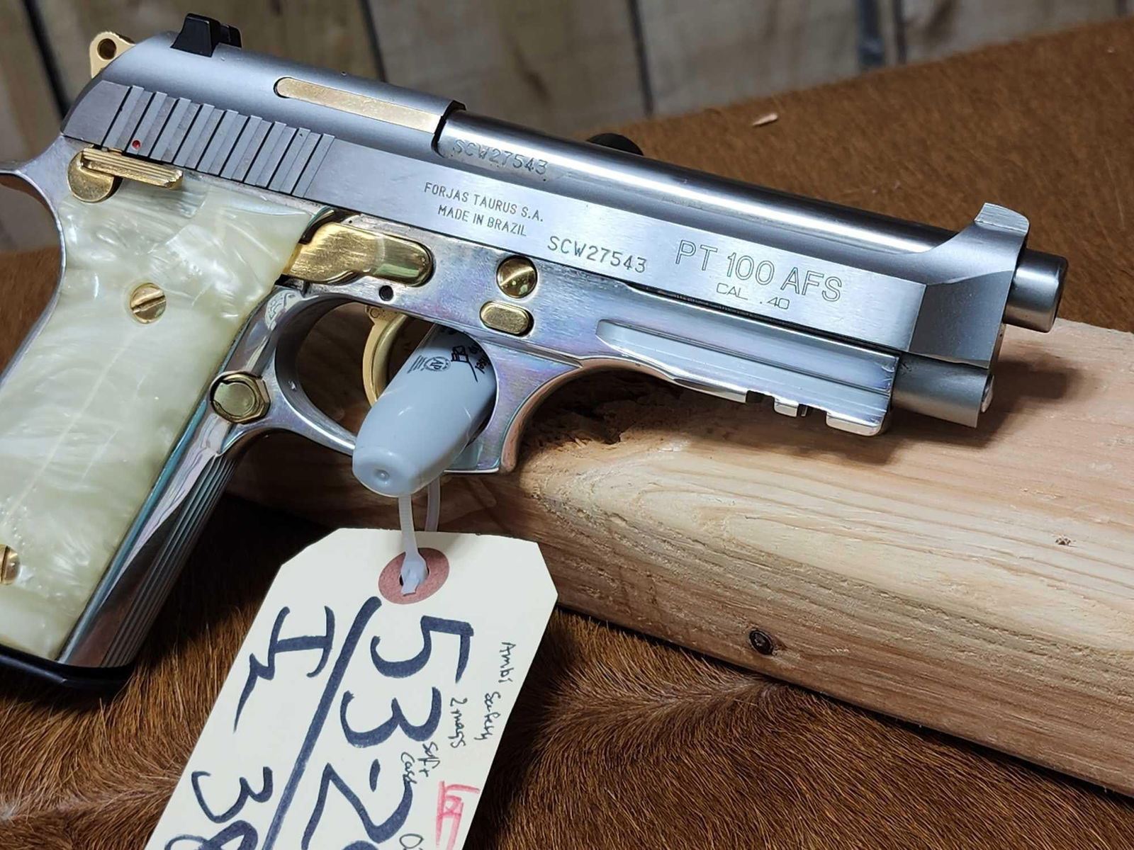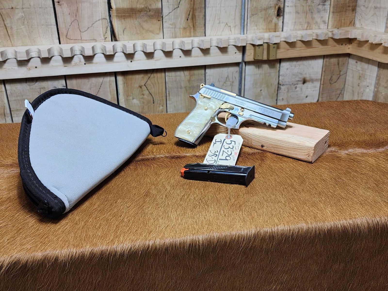 53.29 Stainless with gold accents pearl grips extra mag soft case appears to have seen little use SN SCW27543