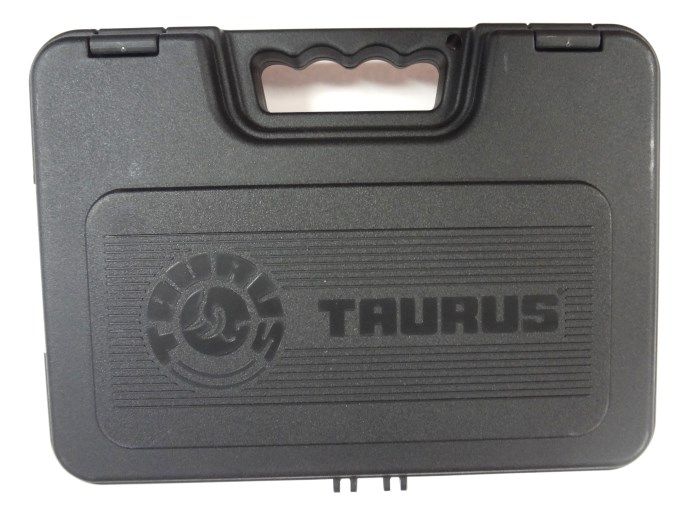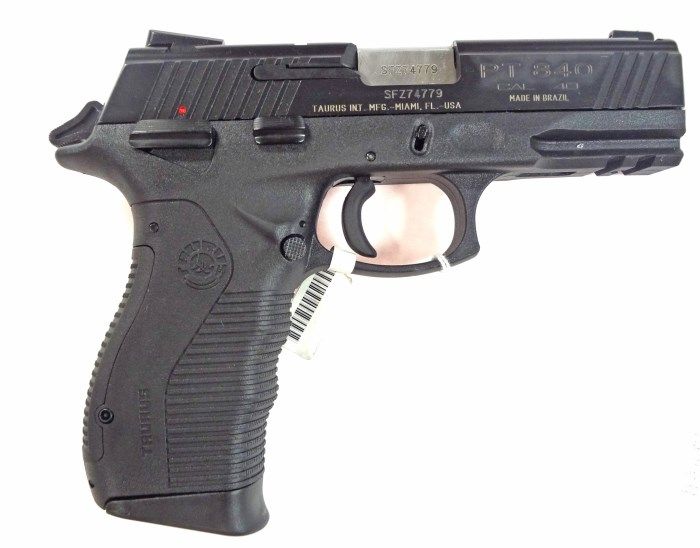 Taurus PT840 Semi-Automatic Pistol. 40 SW. Blue finish. Double Action. Stock: polymer frame, interchangeable backstraps. Capacity: 15+1. # of magazines: 2. Taurus security safety system. Weight: 29.6oz. Features: ambidextrous three position safety & decocker, Ambi Mag Release, "Strike" Two" trigger capability. EST $480-530