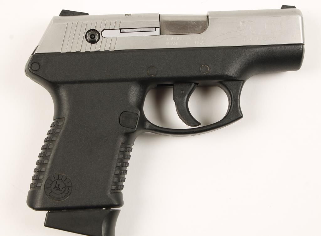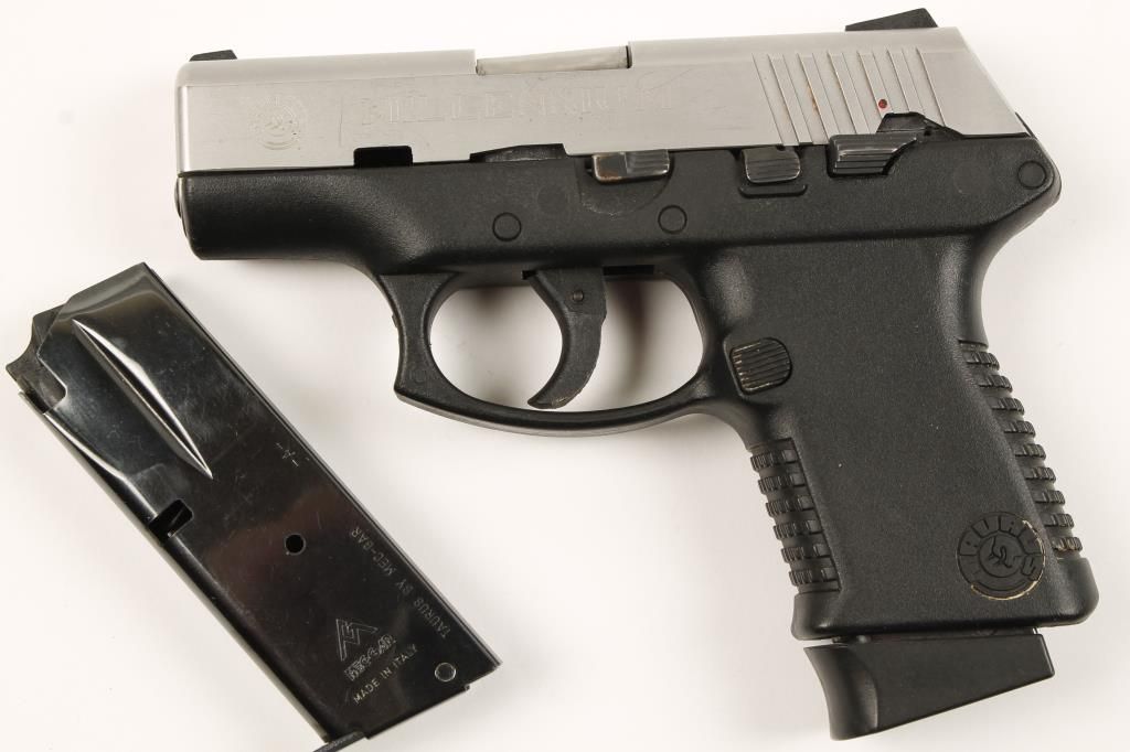 Hammerless double action semi-automatic polymer frame pistol. Two tone finish. 3" barrel with a good bore and rifling. Has an integral action lock. Includes factory box with manual, action lock keys, cleaning brush and two 10-round magazines from Mec-Gar. *Modern Firearm* Condition is very good.