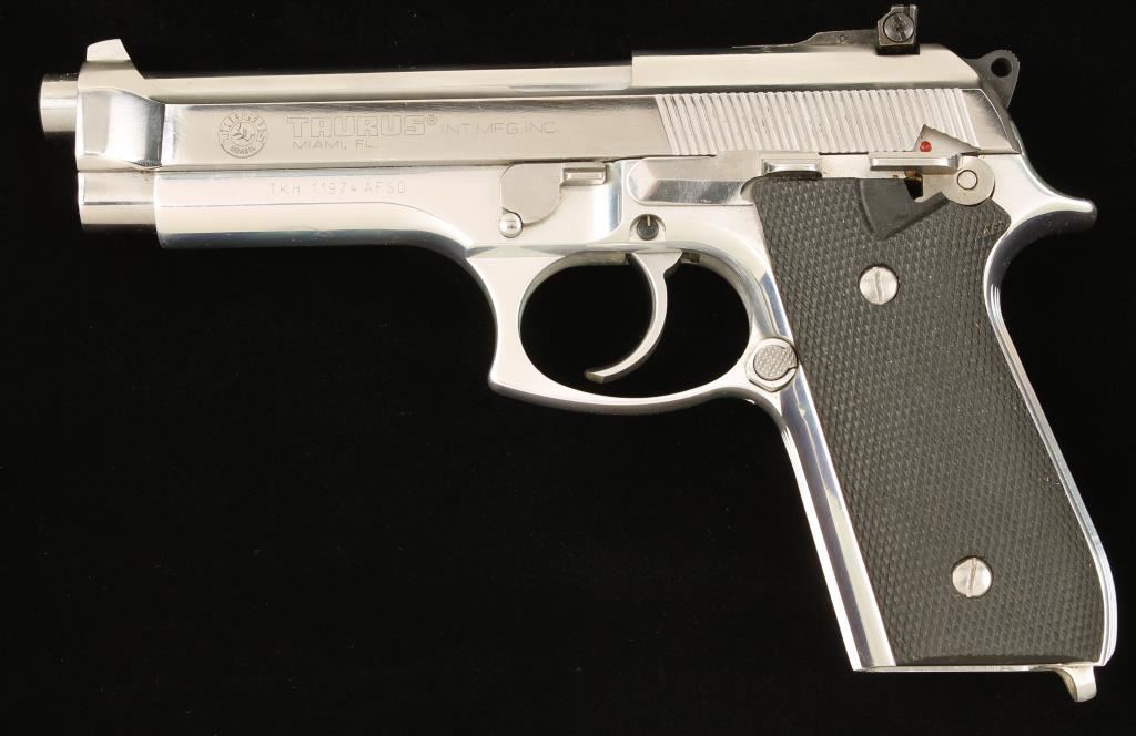 Stainless slide and alloy frame. Double-action semi-automatic pistol with a 5" barrel and one magazine. Slide has a little surface wear and some slight scratches. Polished frame has tiny scratches. Adjustable rear sight. Rubber grips are in good shape. Bore is mirror bright with sharp rifling. Condition is very good. *Modern Firearm*