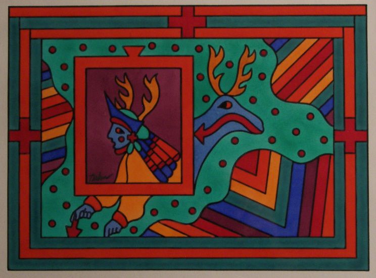 , Tavlos (Sante Fe), , Acrylic on Paper , "The Vision Of The Hunter : Unity #3" , 8' x 11" , Signed Center , Multiple series; II , (7513)