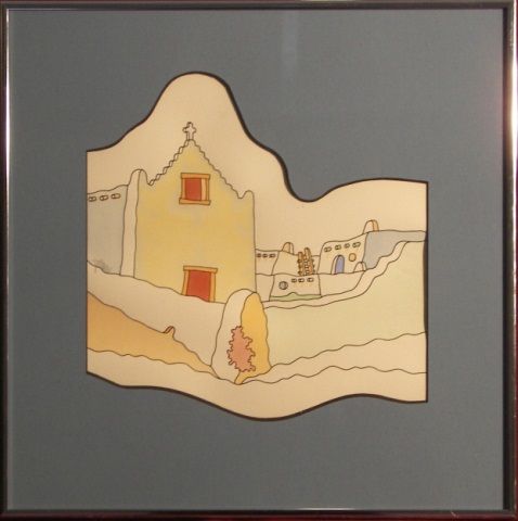Tavlos (Sante Fe), Acrylic on Paper , Tavlos (Sante Fe), , Acrylic on Paper , "Pueblo Mission #24" , 10" x 10" Sight , Signed Left , Multiple Series : 25 , (7520)