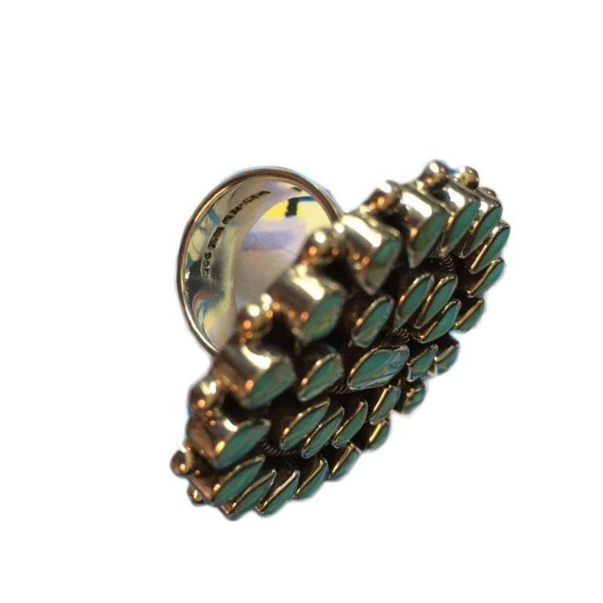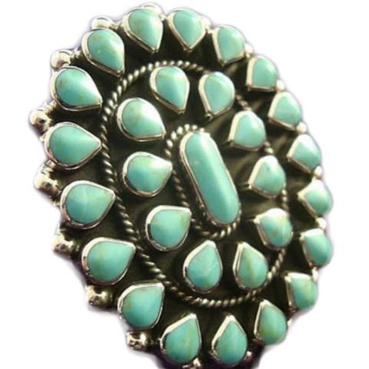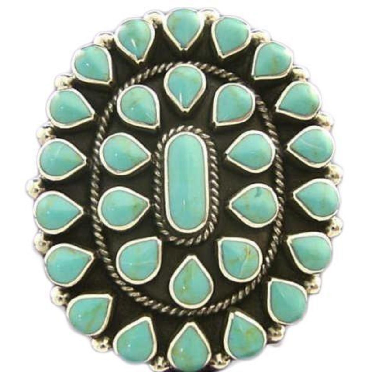 Taxco Mexican sterling silver inlaid turquoise statement ring. Adjustable sizing. Extra large ring face at 1 3/4" X 1 1/2"!