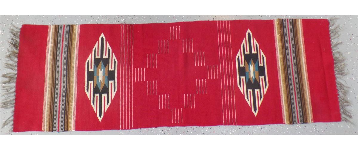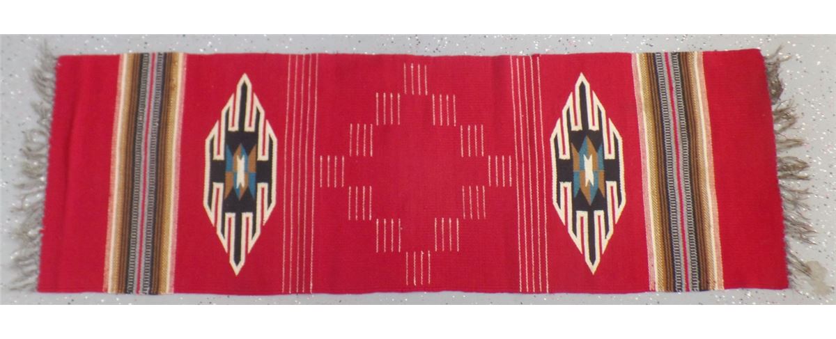 1940's Taxco Mexican Weaving made from wool and cotton. The item is in great condition with only one or two tiny moth holes. Very clean. With fringe the measurements are 5'5"x1'8" wide. Shipping: $16.50