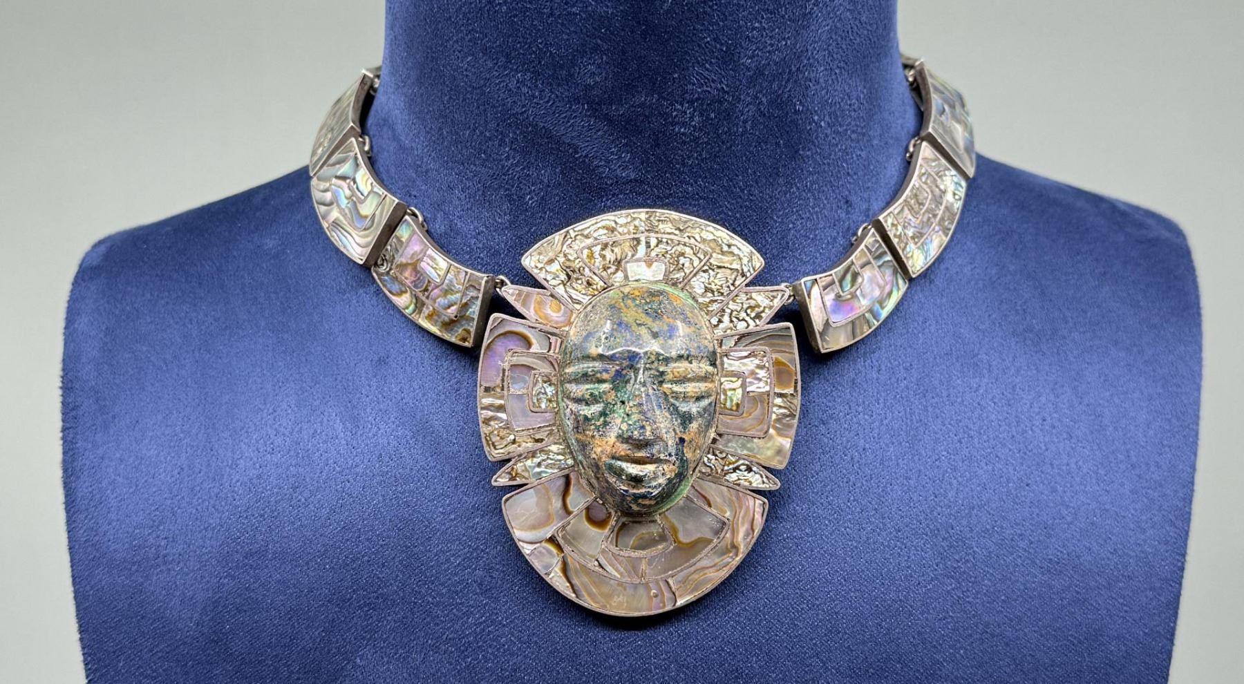 Necklace measures 8 1/4" long closed. Weighs 130 grams.