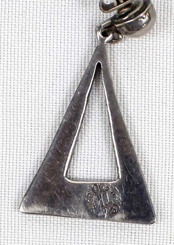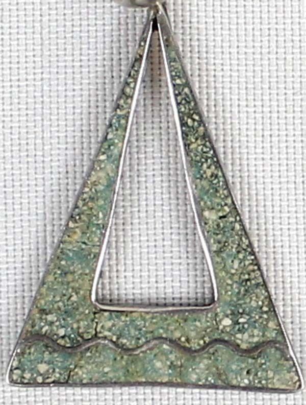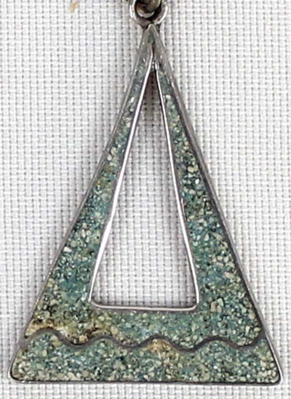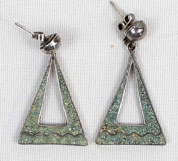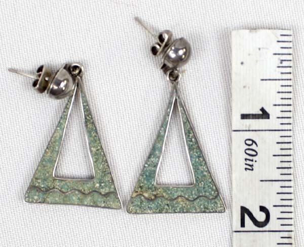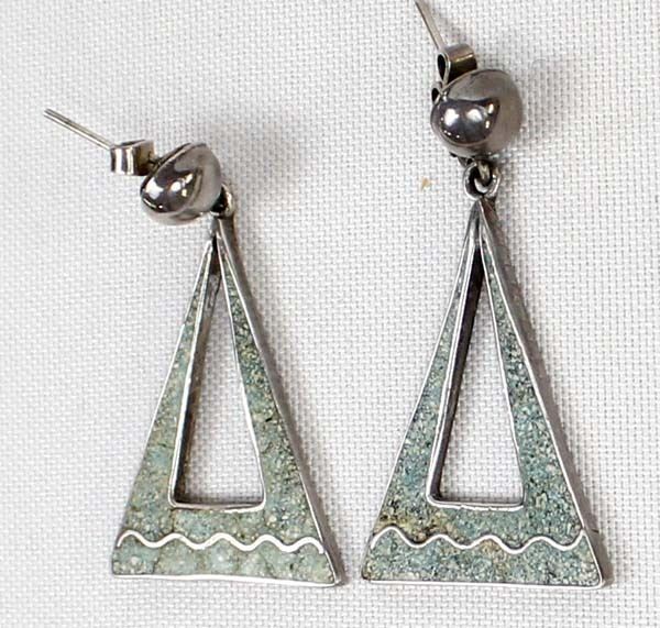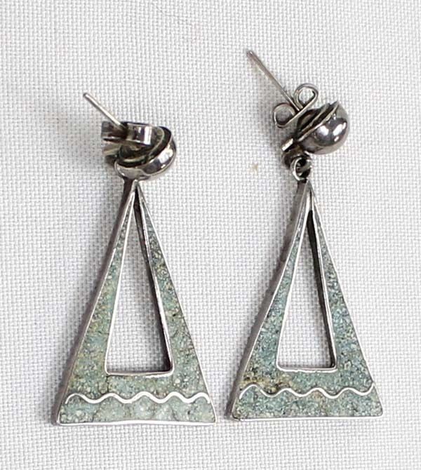 Taxco Sterling Chip Inlay Pierced Earrings, measures 1''W x 2''L, hallmarked and stamped .950