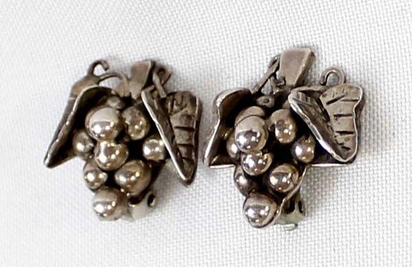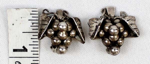 Taxco Sterling Grape Cluster Clip-On Earrings, measures 1'' x 1'', hallmarked and stamped .925