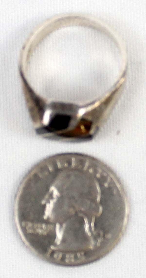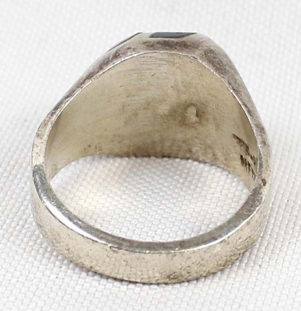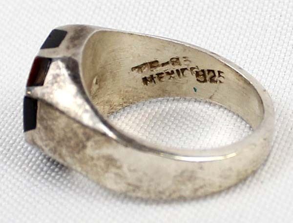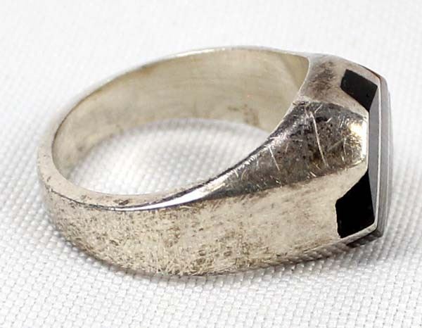 Taxco Sterling Onyx Ring, Size 10.5, measures .5''D and is hallmarked and stamped .925, 14 gtw