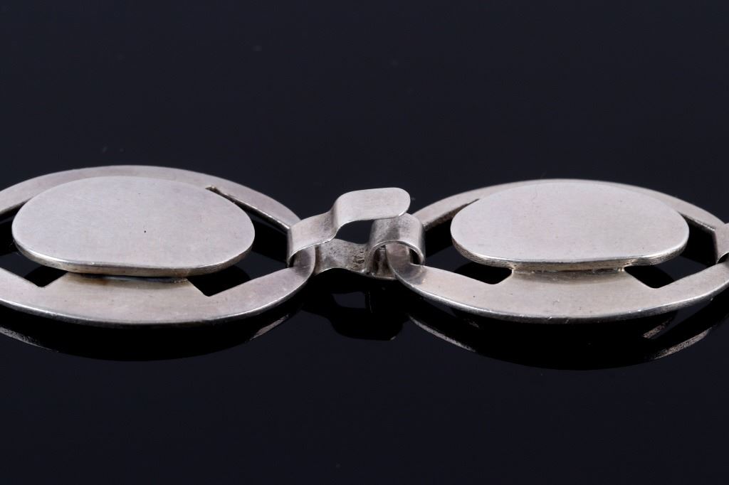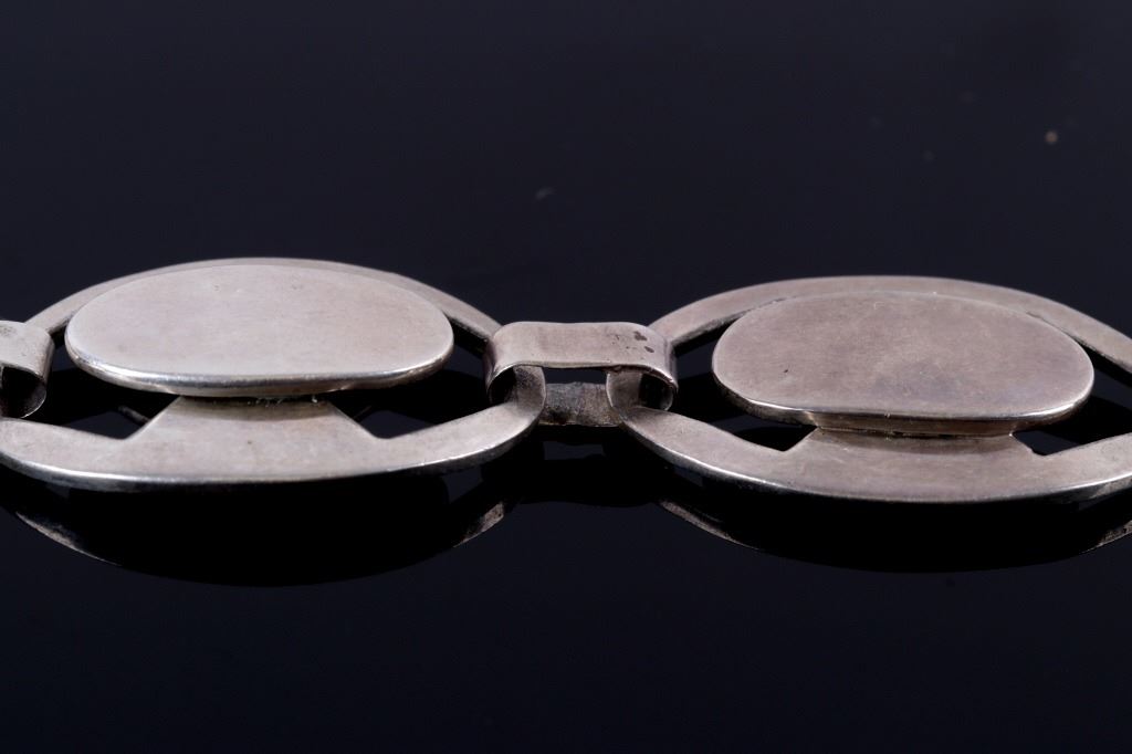 For your consideration is a Taxco sterling silver concho belt. This belt features 24 individually hand crafted sterling silver conchos. Four of these conchos are stamped on the back "Mexico 925" and feature an eagle with the number 3 hallmark. When unclasped this concho belt measures 32 1/4".