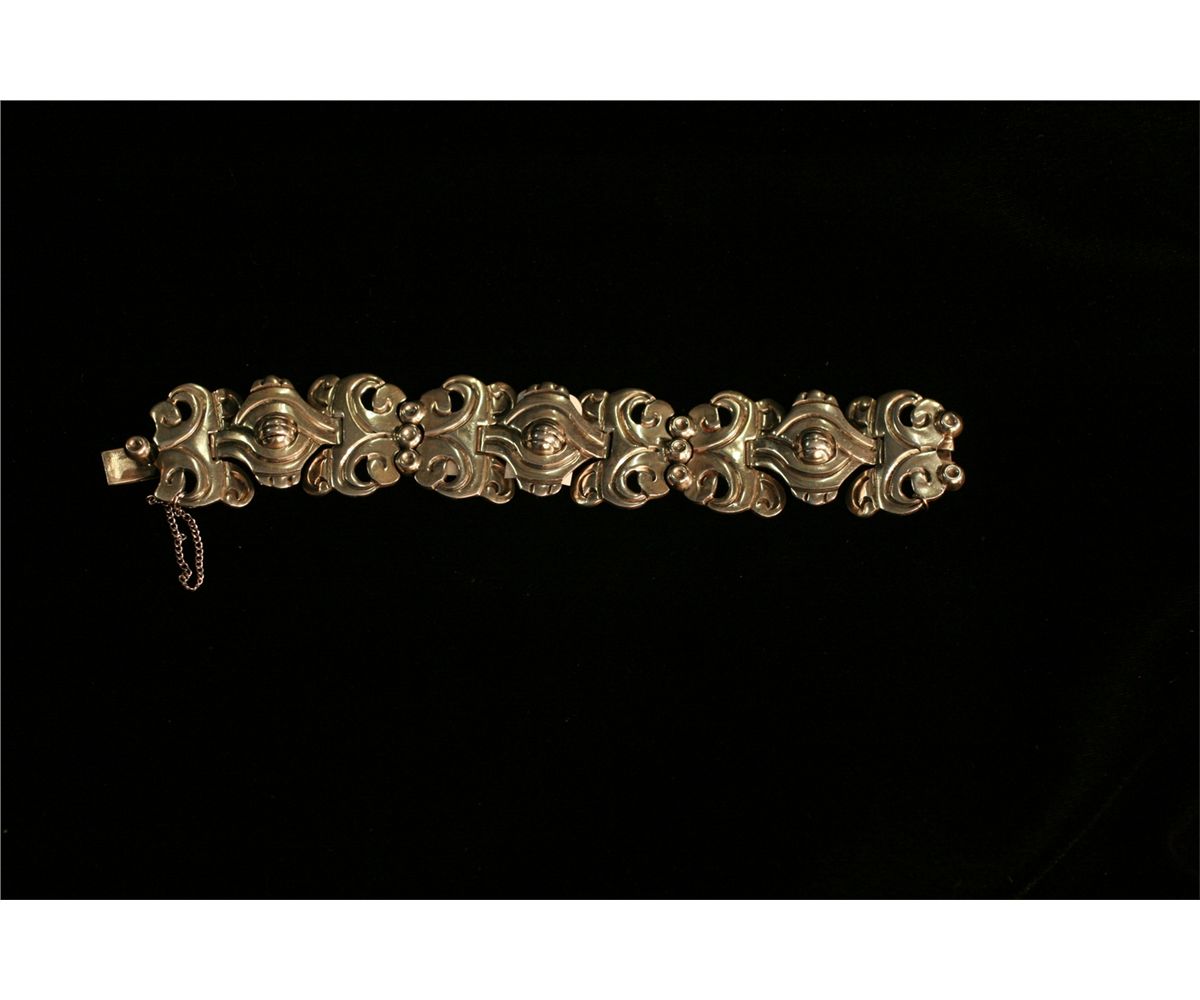 Taxco Style Silver Bracelet, 1-1/4" wide, Total weight 79.9 grams, -227229-