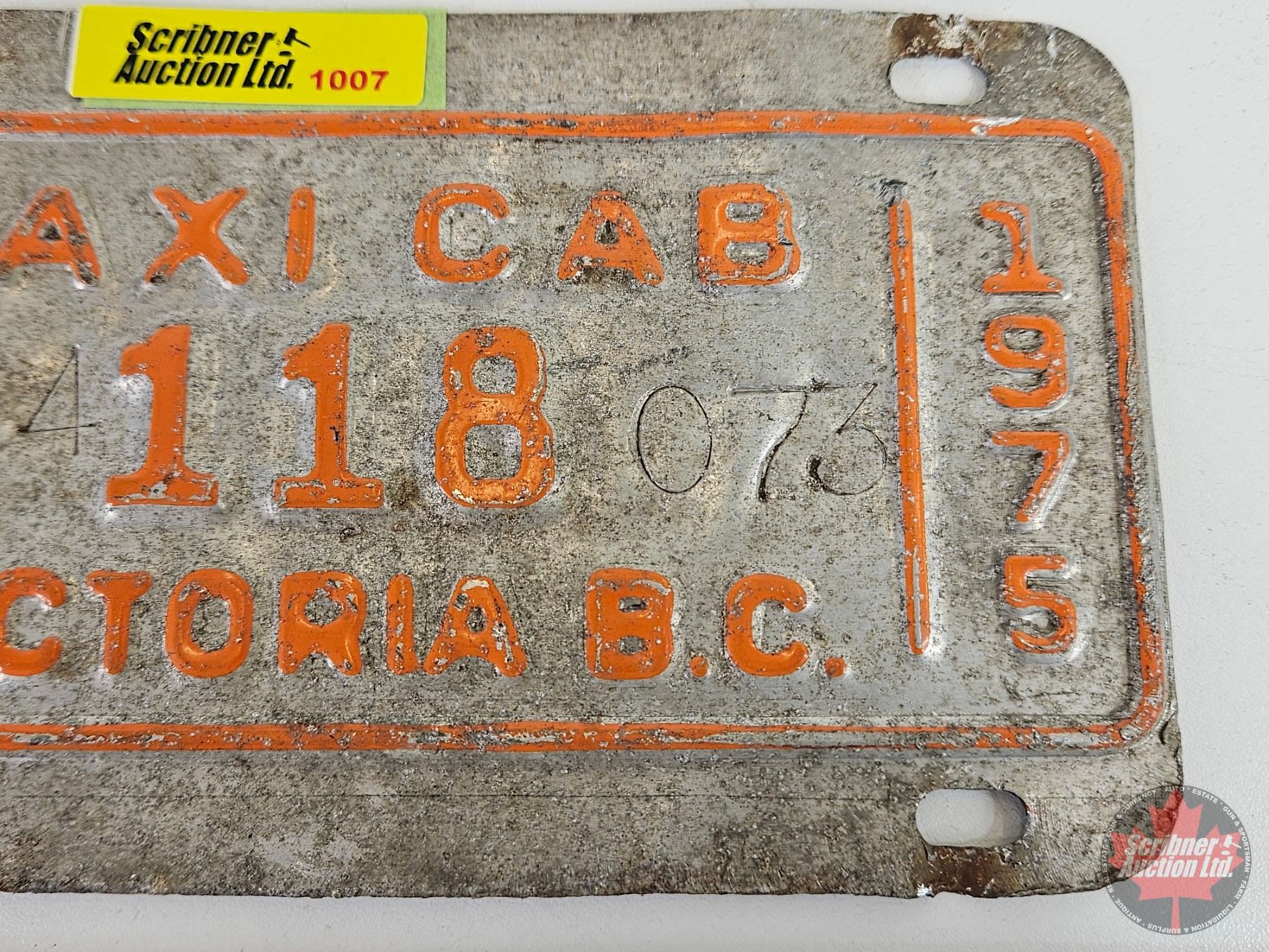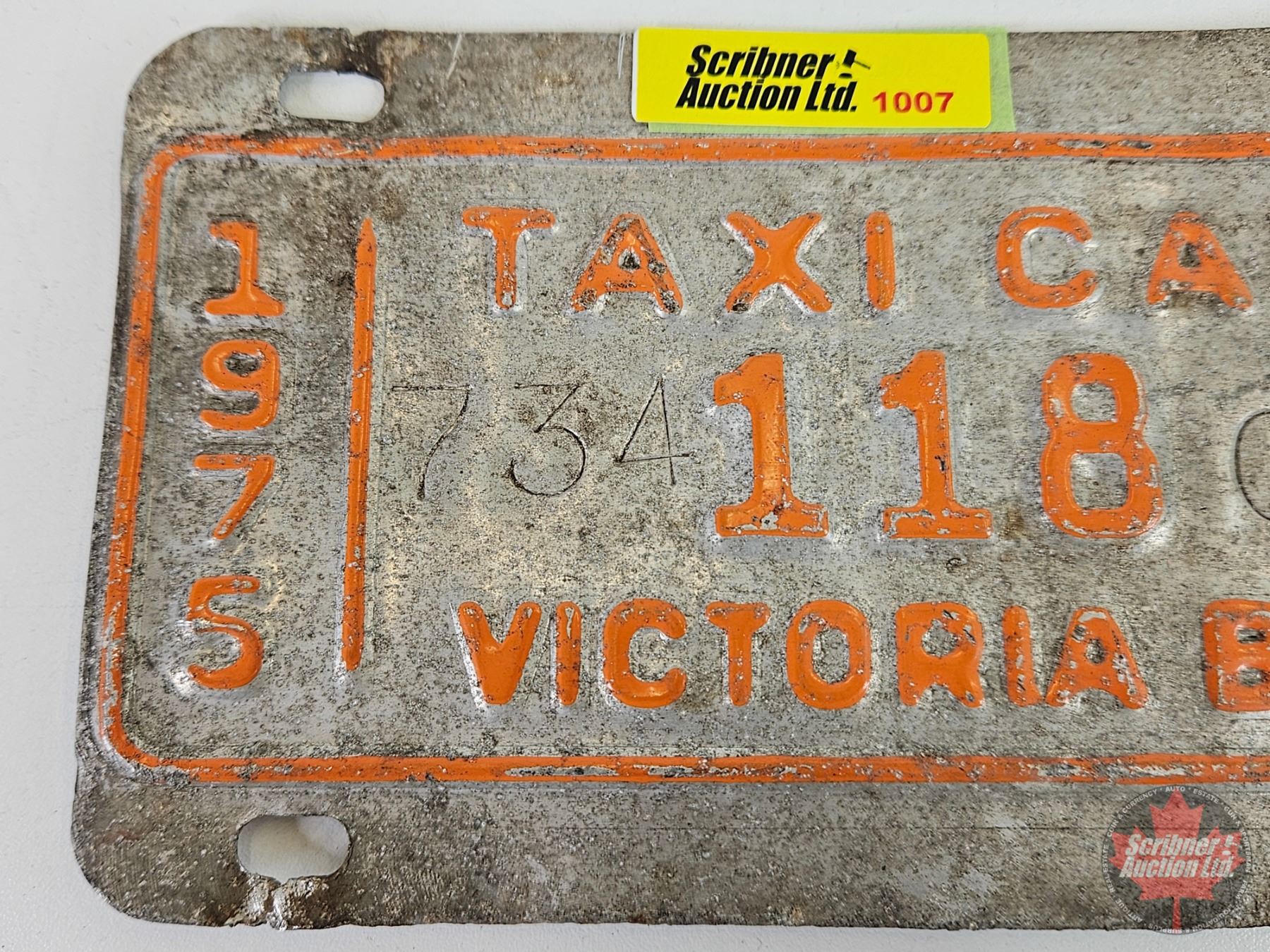 Taxi Cab Lic Plate : Victoria B.C. : 1975