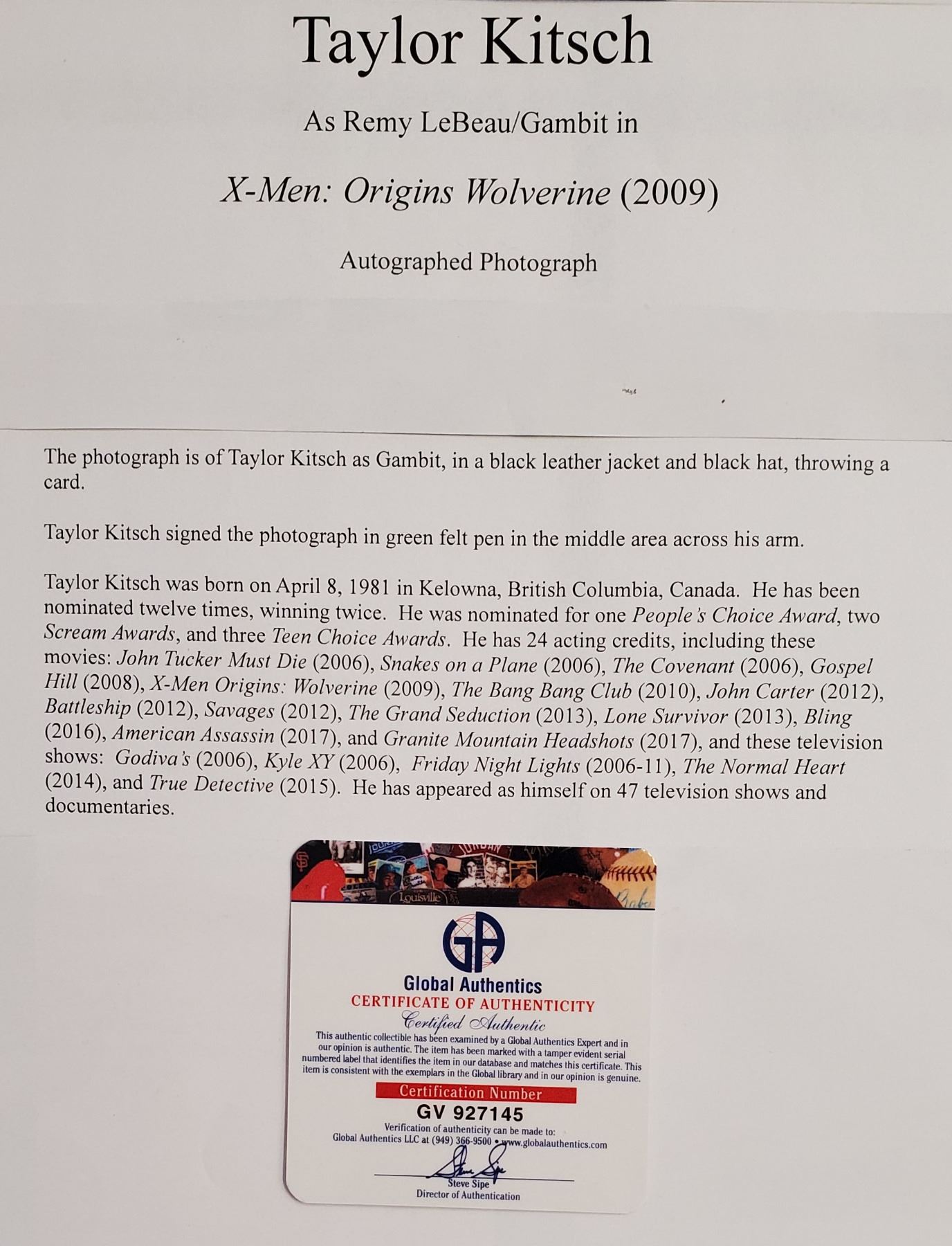 Signed 8” x 10” Photo. Gambit.