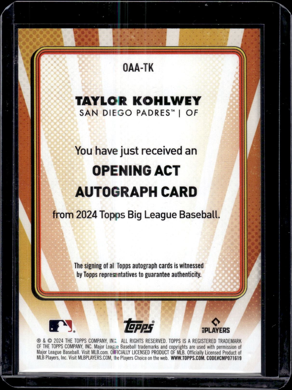 Taylor Kohlwey Opening Act RC Auto 2024 Topps Big League #OAA-TK