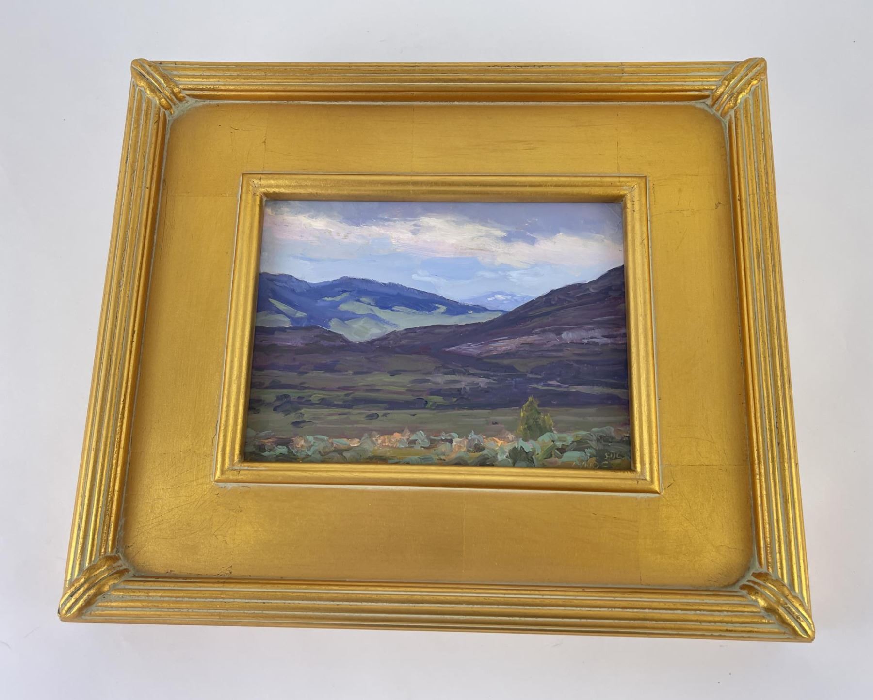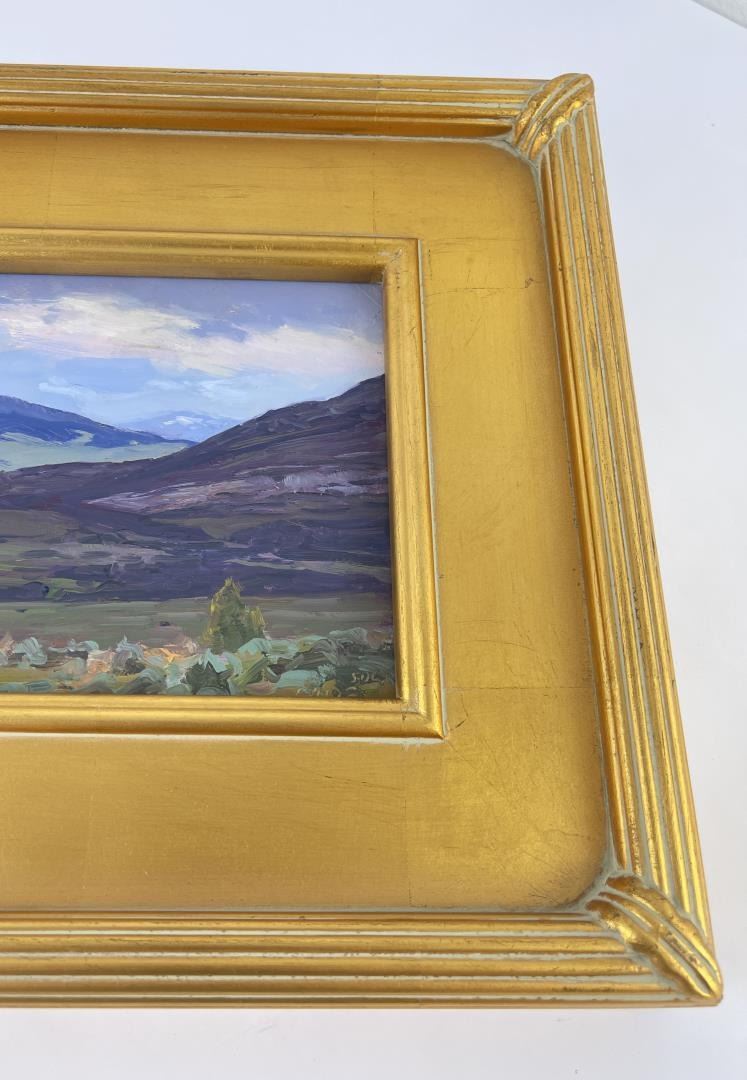 Very nice plein air painting. 11 3/4" by 13 1/2" framed, 6" by 8" unframed. Taylor Lynde is a fourth generation resident of Montana. His career has been influenced by two men, artist Scott Switzer and his high school art teacher, Michael Kosorok. Besides teaching Lynde the art of oil painting Kosorok also helped him to win a partial scholarship to the Pratt Institute in New York where he spent a year studying drawing and art history. After a year in New York Lynde joined the Navy and served in Desert Shield. He returned to Montana in 1995. He was encouraged again by Switzer who supported him in exchange for Lynde making frames for him. Switzer mentored Lynde for two years and introduced him to his first gallery. Lynde's impressionistic style captures the honest beauty of his subjects.