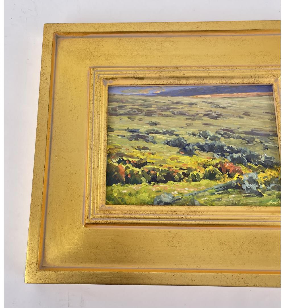 Oil on board. 6" by 8" unframed. Taylor Lynde is a fourth generation resident of Montana. His career has been influenced by two men, artist Scott Switzer and his high school art teacher, Michael Kosorok. Besides teaching Lynde the art of oil painting Kosorok also helped him to win a partial scholarship to the Pratt Institute in New York where he spent a year studying drawing and art history. After a year in New York Lynde joined the Navy and served in Desert Shield. He returned to Montana in 1995. He was encouraged again by Switzer who supported him in exchange for Lynde making frames for him. Switzer mentored Lynde for two years and introduced him to his first gallery. Lynde's impressionistic style captures the honest beauty of his subjects.
