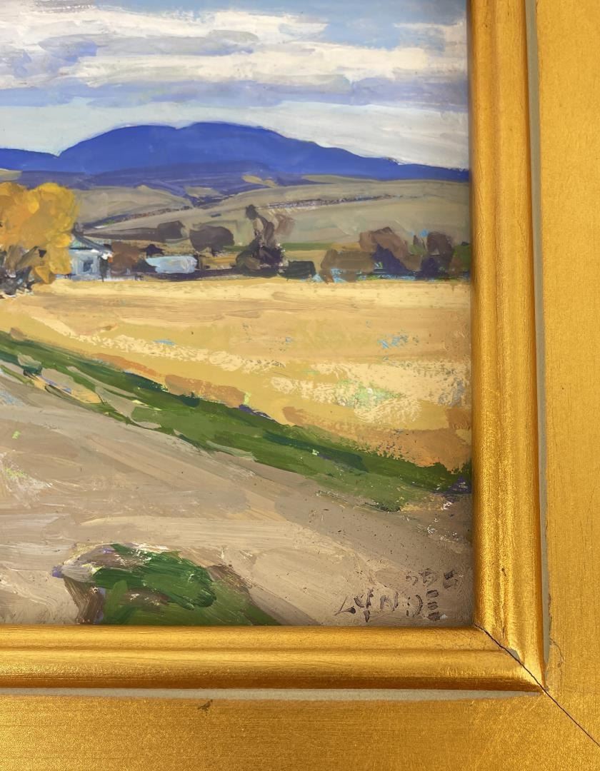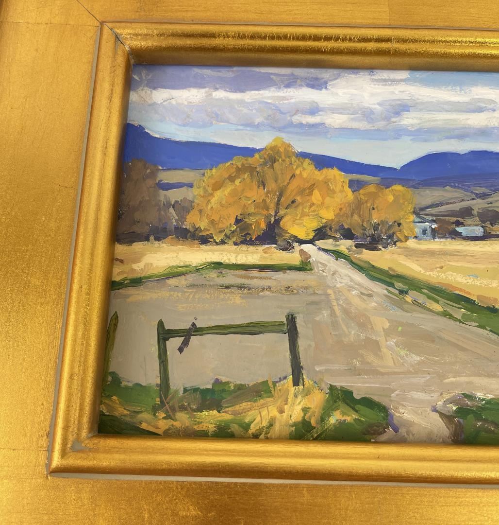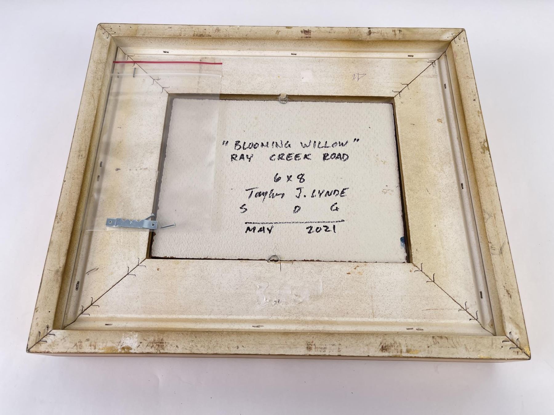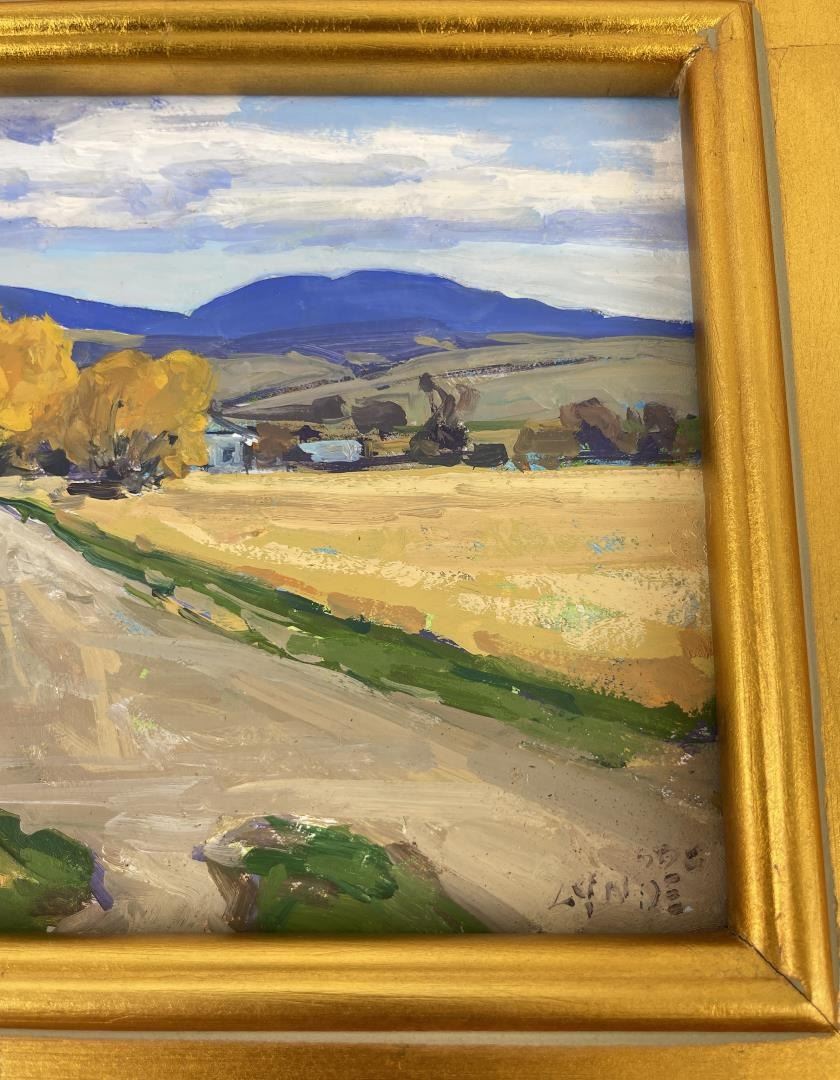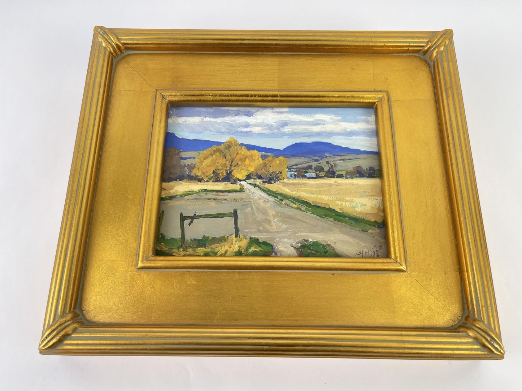 Very nice plein air painting. Oil on board. 6" by 8" unframed. 11.5" by 13.5" framed. Taylor Lynde is a fourth generation resident of Montana. His career has been influenced by two men, artist Scott Switzer and his high school art teacher, Michael Kosorok. Besides teaching Lynde the art of oil painting Kosorok also helped him to win a partial scholarship to the Pratt Institute in New York where he spent a year studying drawing and art history. After a year in New York Lynde joined the Navy and served in Desert Shield. He returned to Montana in 1995. He was encouraged again by Switzer who supported him in exchange for Lynde making frames for him. Switzer mentored Lynde for two years and introduced him to his first gallery. Lynde's impressionistic style captures the honest beauty of his subjects.