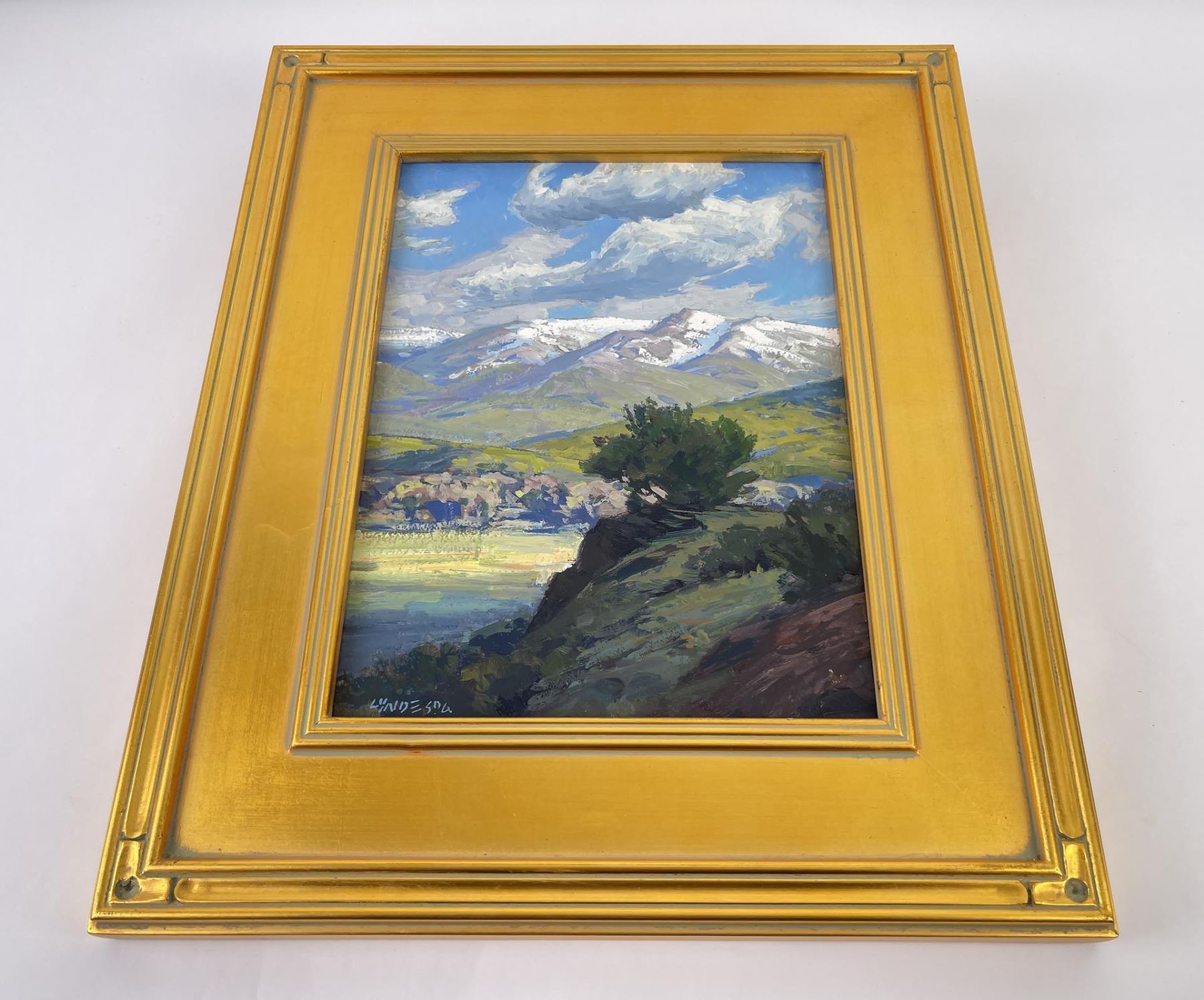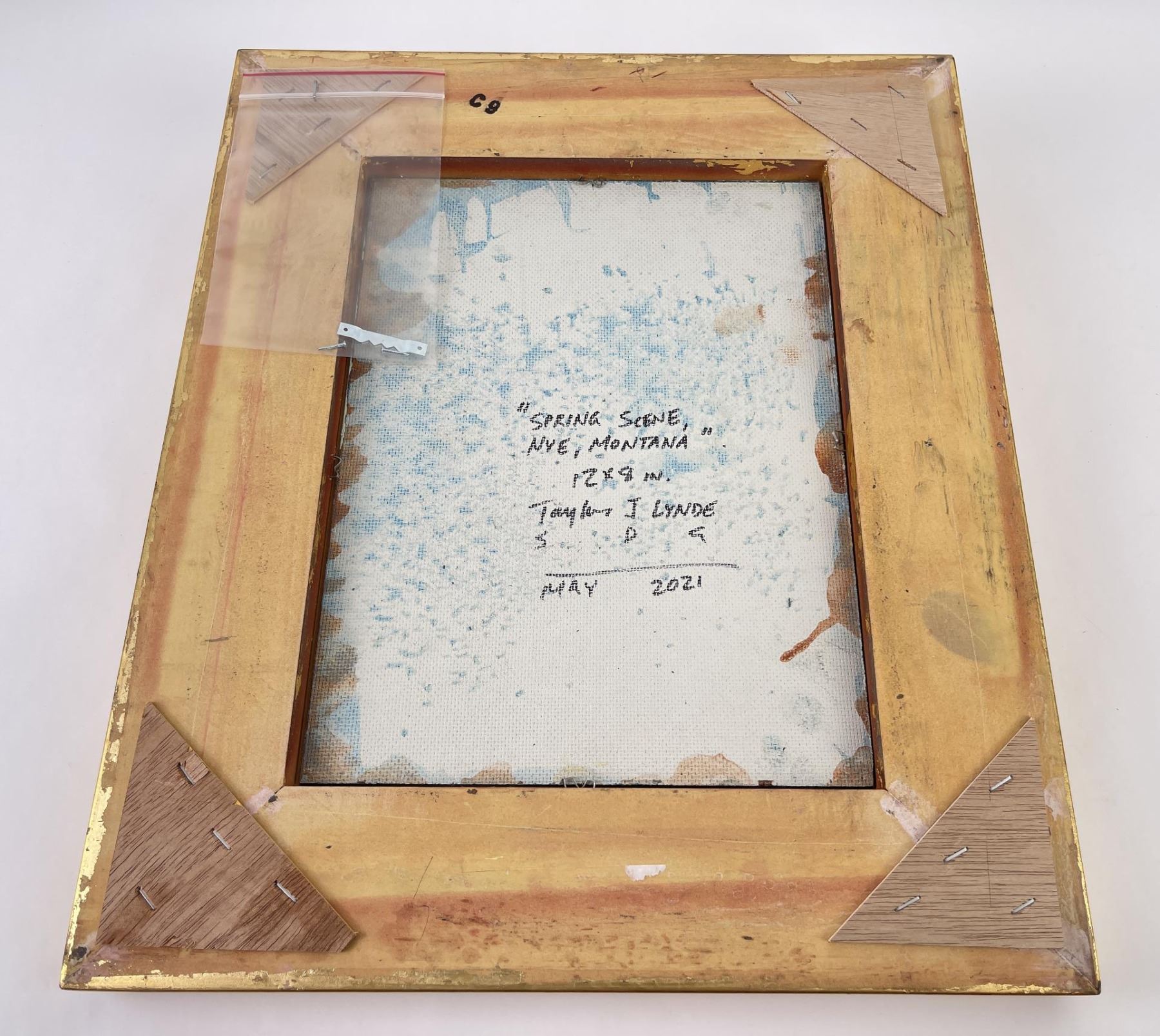 Very nice plein air painting. Oil on board. 9" by 12" unframed. 14.5" by 17.5" framed. Taylor Lynde is a fourth generation resident of Montana. His career has been influenced by two men, artist Scott Switzer and his high school art teacher, Michael Kosorok. Besides teaching Lynde the art of oil painting Kosorok also helped him to win a partial scholarship to the Pratt Institute in New York where he spent a year studying drawing and art history. After a year in New York Lynde joined the Navy and served in Desert Shield. He returned to Montana in 1995. He was encouraged again by Switzer who supported him in exchange for Lynde making frames for him. Switzer mentored Lynde for two years and introduced him to his first gallery. Lynde's impressionistic style captures the honest beauty of his subjects.