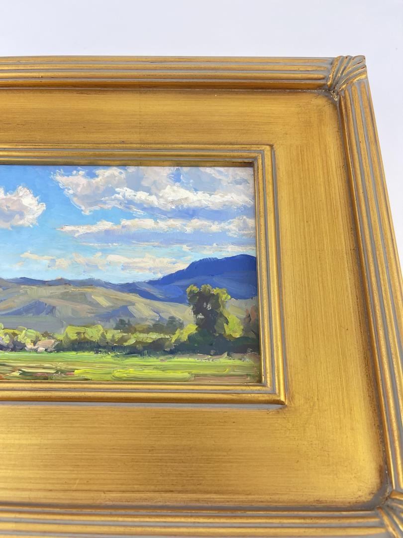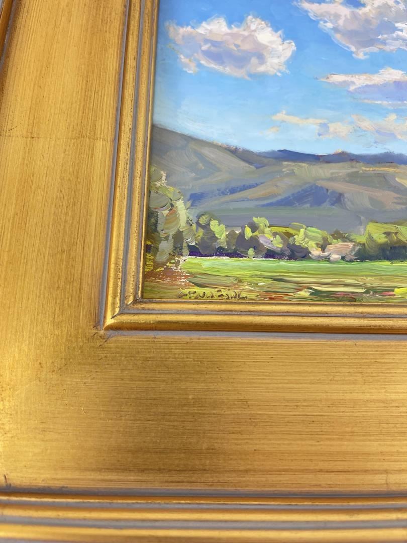 Very nice plein air painting. 11 3/4" by 13 1/2" framed, 6" by 8" unframed. Taylor Lynde is a fourth generation resident of Montana. His career has been influenced by two men, artist Scott Switzer and his high school art teacher, Michael Kosorok. Besides teaching Lynde the art of oil painting Kosorok also helped him to win a partial scholarship to the Pratt Institute in New York where he spent a year studying drawing and art history. After a year in New York Lynde joined the Navy and served in Desert Shield. He returned to Montana in 1995. He was encouraged again by Switzer who supported him in exchange for Lynde making frames for him. Switzer mentored Lynde for two years and introduced him to his first gallery. Lynde's impressionistic style captures the honest beauty of his subjects.
