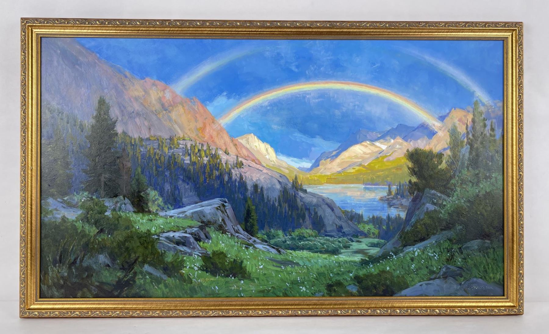 Very nice plein air painting. Phenomenal and Beautiful example of the artists work. 20" by 34" framed, 18" by 32" unframed. Title is Down to Rainbow. Taylor Lynde is a fourth generation resident of Montana. His career has been influenced by two men, artist Scott Switzer and his high school art teacher, Michael Kosorok. Besides teaching Lynde the art of oil painting Kosorok also helped him to win a partial scholarship to the Pratt Institute in New York where he spent a year studying drawing and art history. After a year in New York Lynde joined the Navy and served in Desert Shield. He returned to Montana in 1995. He was encouraged again by Switzer who supported him in exchange for Lynde making frames for him. Switzer mentored Lynde for two years and introduced him to his first gallery. Lynde's impressionistic style captures the honest beauty of his subjects.