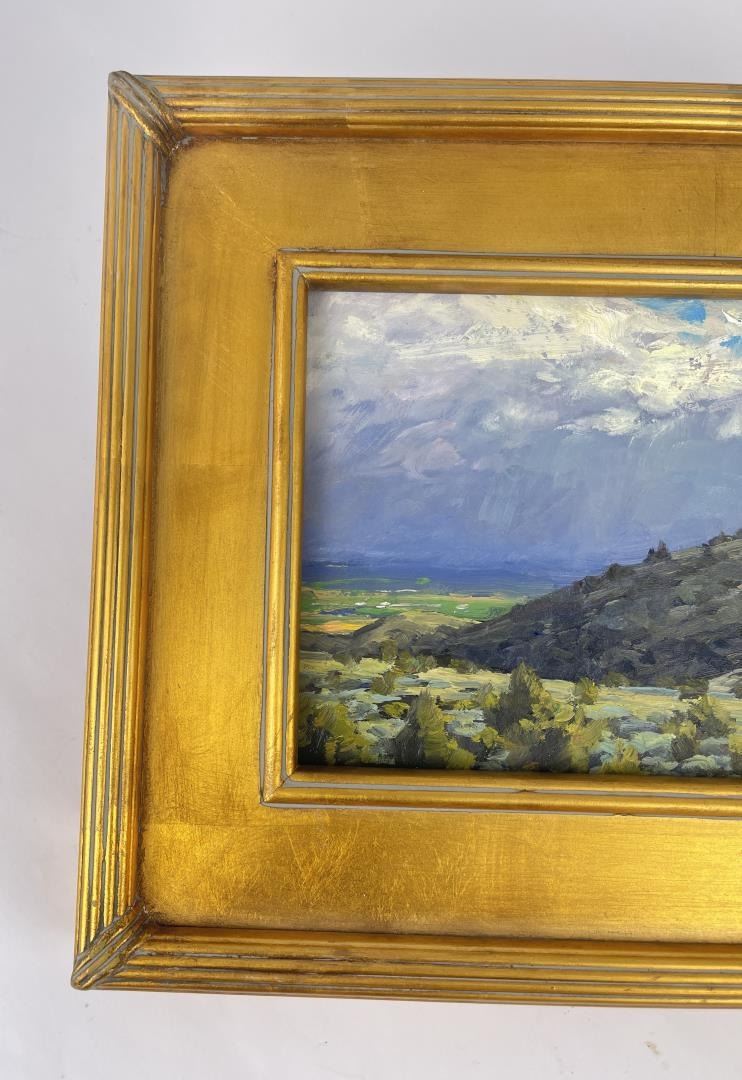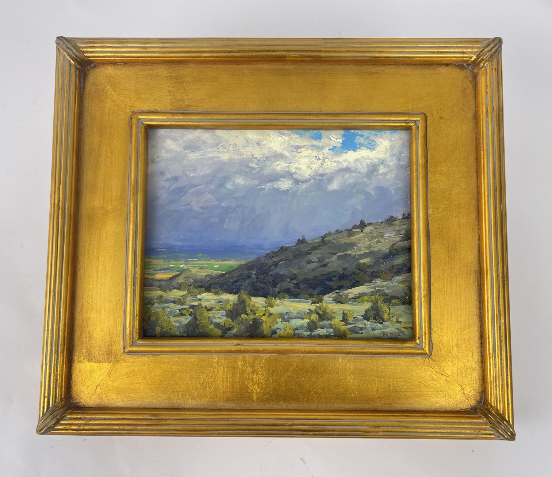 Very nice plein air painting. 13 3/4" by 15 3/4" framed, 8" by 10" unframed. Taylor Lynde is a fourth generation resident of Montana. His career has been influenced by two men, artist Scott Switzer and his high school art teacher, Michael Kosorok. Besides teaching Lynde the art of oil painting Kosorok also helped him to win a partial scholarship to the Pratt Institute in New York where he spent a year studying drawing and art history. After a year in New York Lynde joined the Navy and served in Desert Shield. He returned to Montana in 1995. He was encouraged again by Switzer who supported him in exchange for Lynde making frames for him. Switzer mentored Lynde for two years and introduced him to his first gallery. Lynde's impressionistic style captures the honest beauty of his subjects.