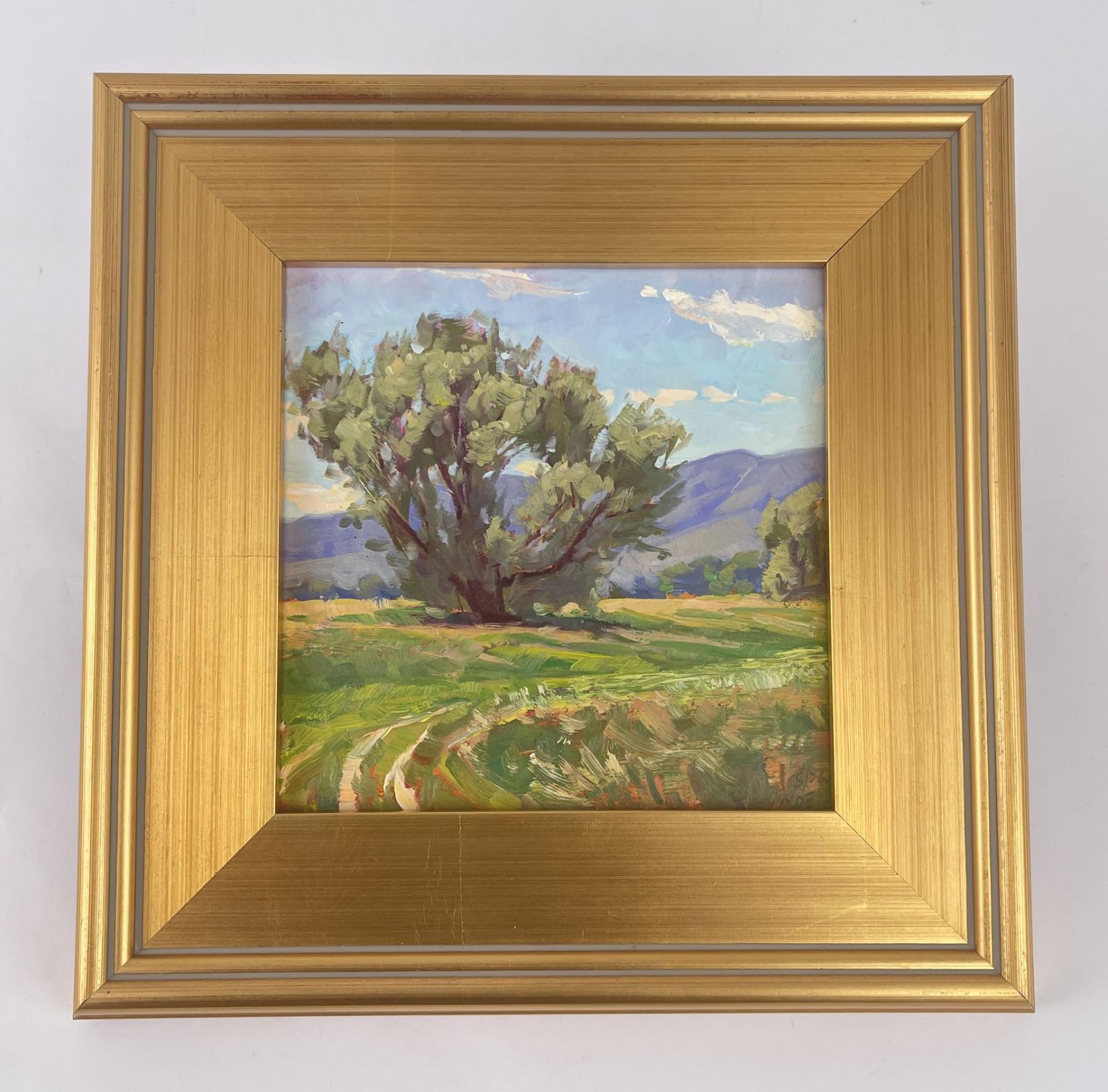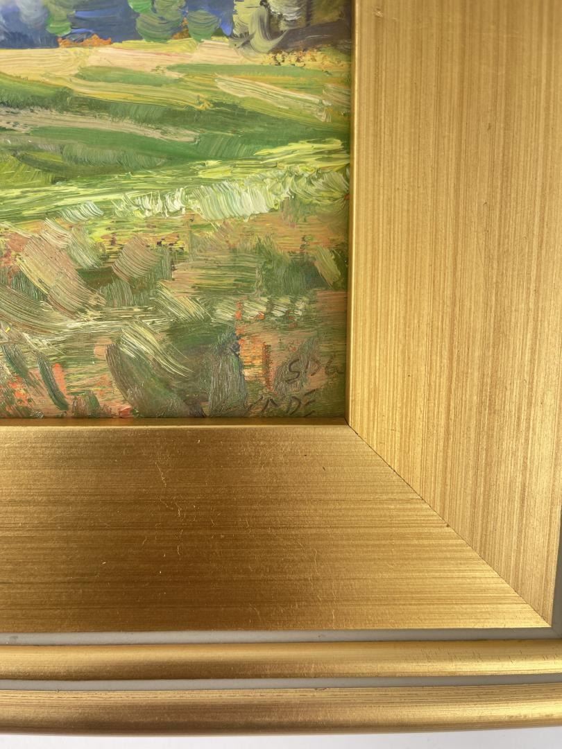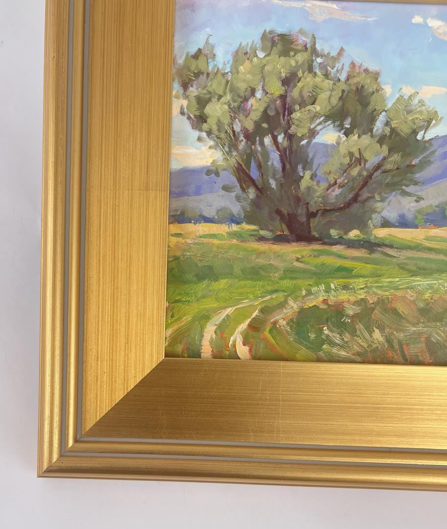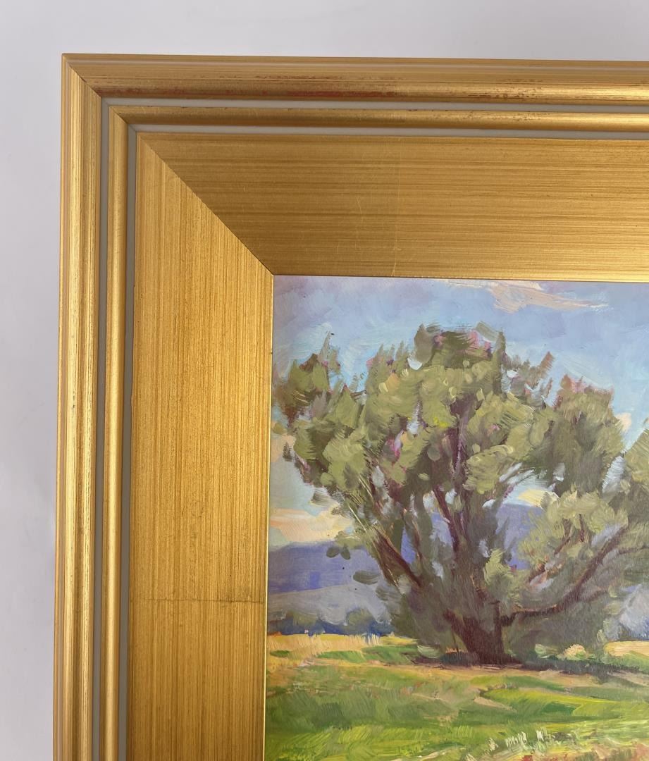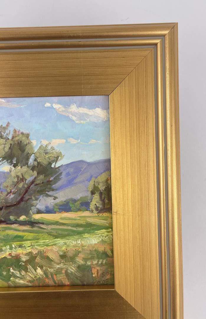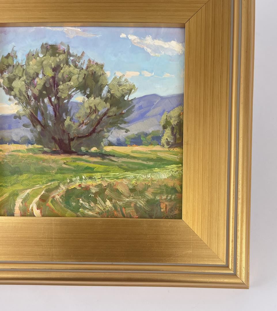 Very nice plein air painting. 12 3/4" by 12 3/4" framed, 8" by 8" unframed. Taylor Lynde is a fourth generation resident of Montana. His career has been influenced by two men, artist Scott Switzer and his high school art teacher, Michael Kosorok. Besides teaching Lynde the art of oil painting Kosorok also helped him to win a partial scholarship to the Pratt Institute in New York where he spent a year studying drawing and art history. After a year in New York Lynde joined the Navy and served in Desert Shield. He returned to Montana in 1995. He was encouraged again by Switzer who supported him in exchange for Lynde making frames for him. Switzer mentored Lynde for two years and introduced him to his first gallery. Lynde's impressionistic style captures the honest beauty of his subjects.