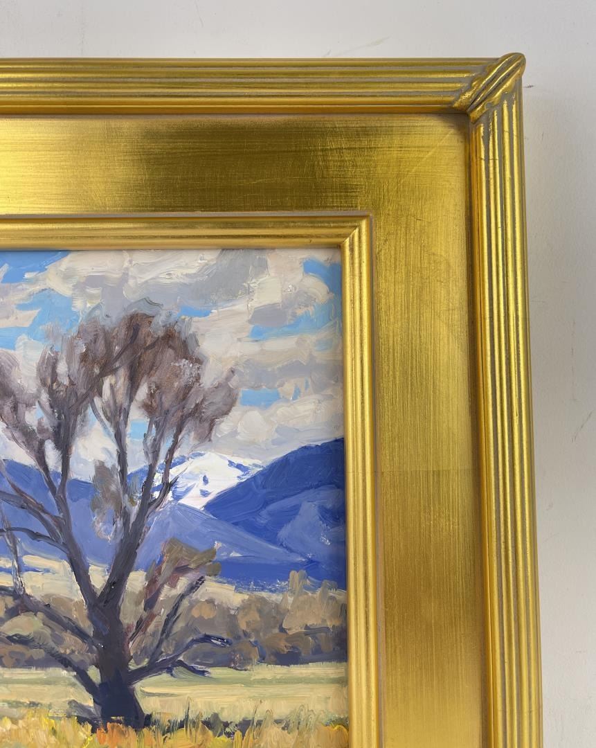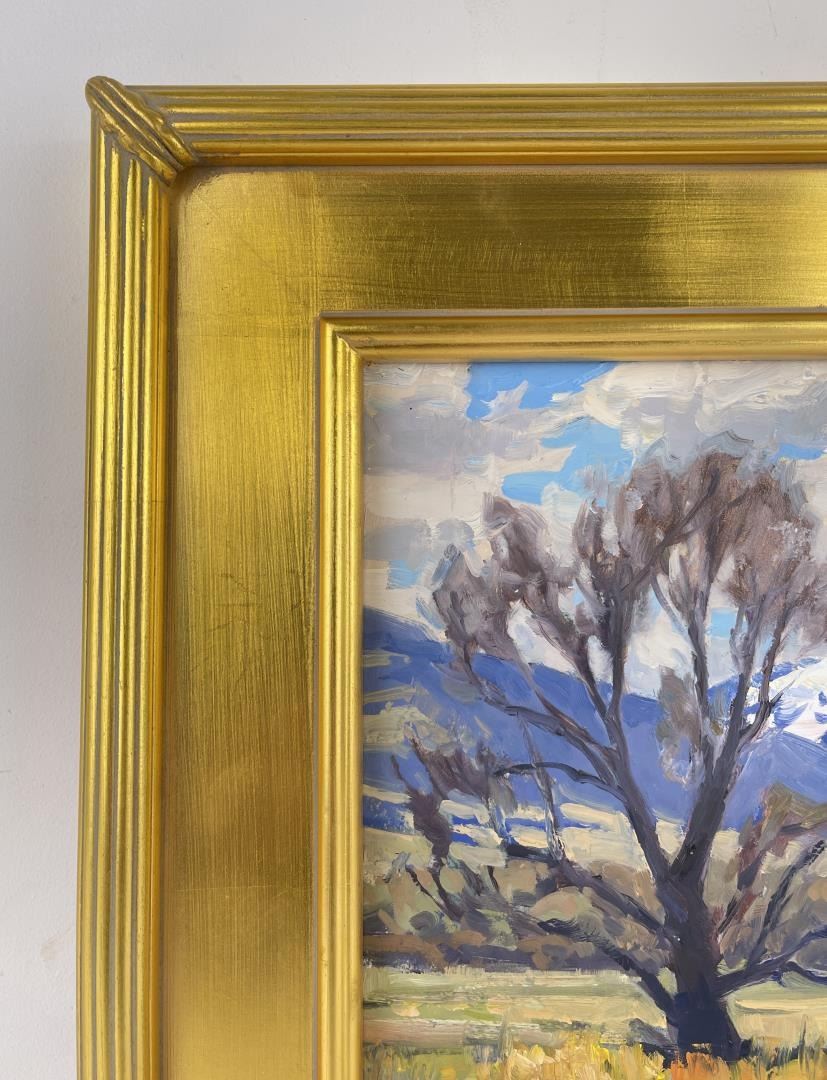 Very nice plein air painting. 13 3/4" by 15 3/4" framed, 8" by 10" unframed. Taylor Lynde is a fourth generation resident of Montana. His career has been influenced by two men, artist Scott Switzer and his high school art teacher, Michael Kosorok. Besides teaching Lynde the art of oil painting Kosorok also helped him to win a partial scholarship to the Pratt Institute in New York where he spent a year studying drawing and art history. After a year in New York Lynde joined the Navy and served in Desert Shield. He returned to Montana in 1995. He was encouraged again by Switzer who supported him in exchange for Lynde making frames for him. Switzer mentored Lynde for two years and introduced him to his first gallery. Lynde's impressionistic style captures the honest beauty of his subjects.